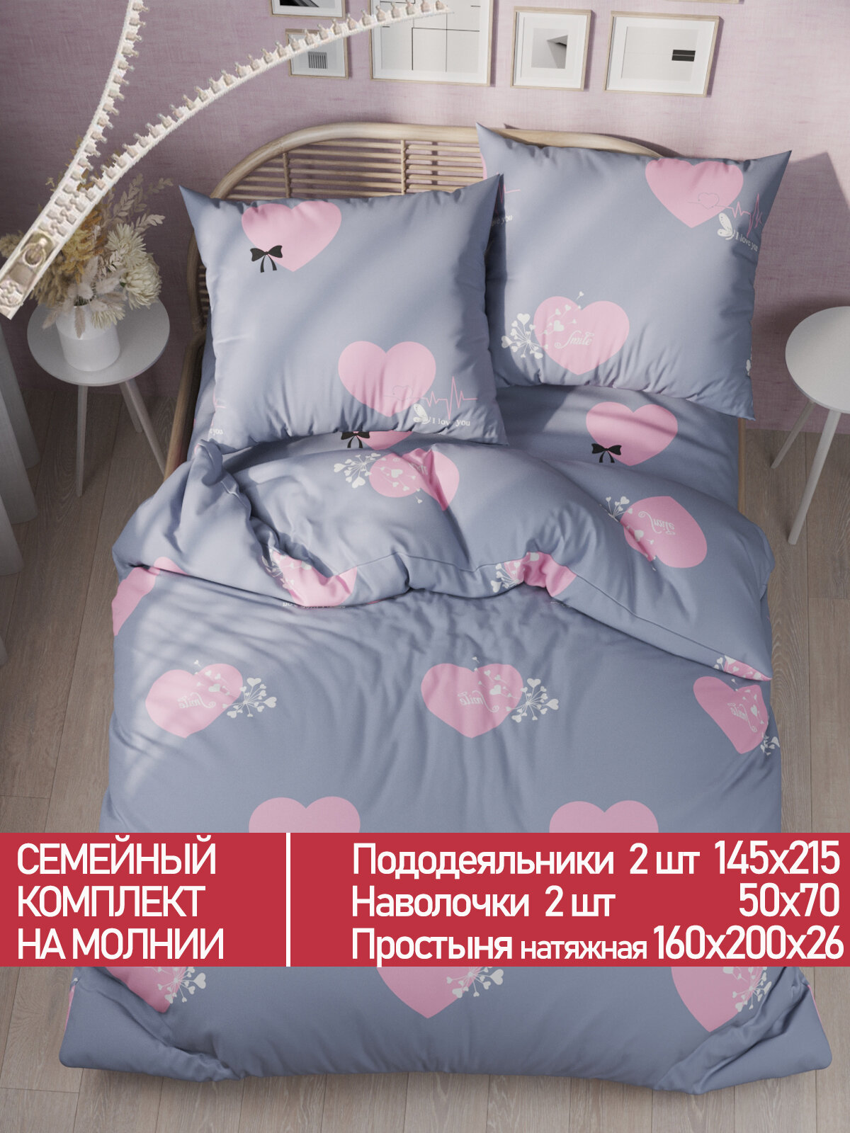 Постельное белье Мечта "Loved" семейное Пододеяльник 145х215 см(2шт) наволочки 50х70 2шт Простынь на резинке 160х200 см информация: