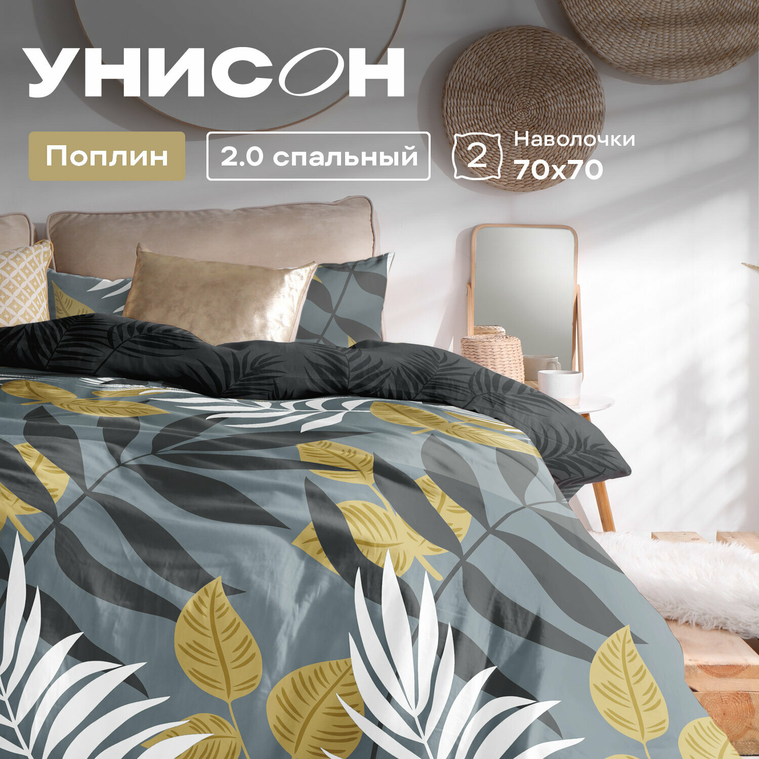 Постельное белье 2 спальное Унисон, Поплин, нав. 70х70, Golden feathers 2 511 ₽