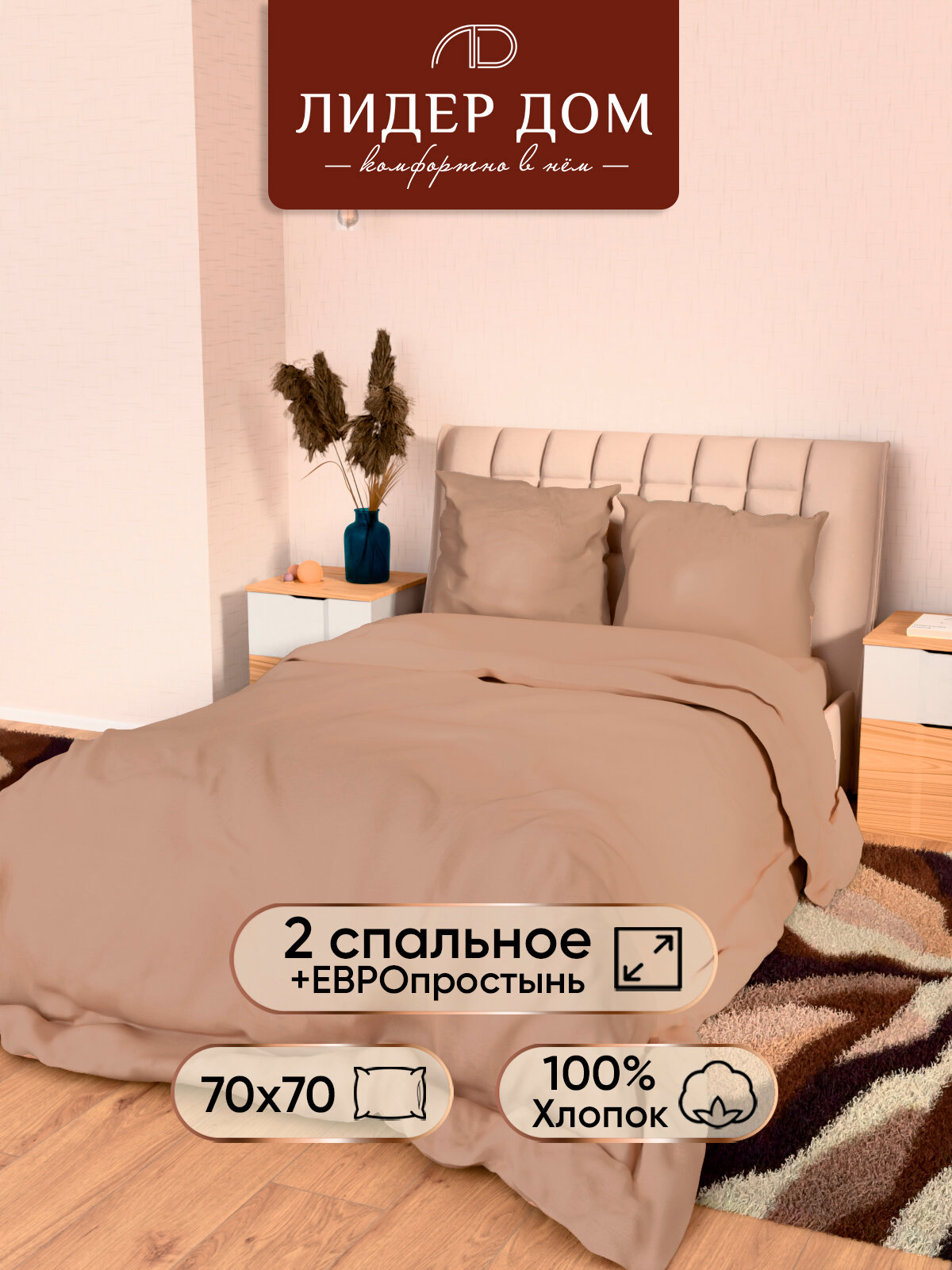 Постельное белье Лидер Дом, хлопок, бязь, 2-спальное, с европростыней, бежевый 2 400 ₽