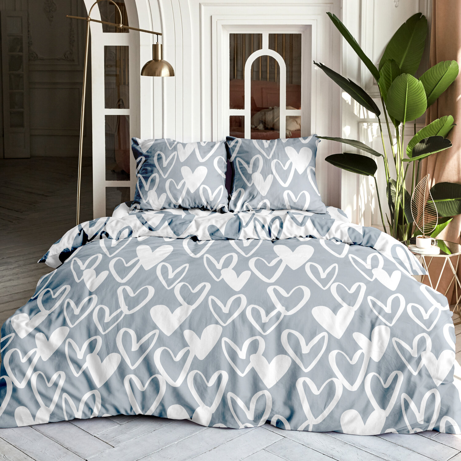 Постельное белье семейное Унисон, Бязь, нав. 70х70, Hearts информация: