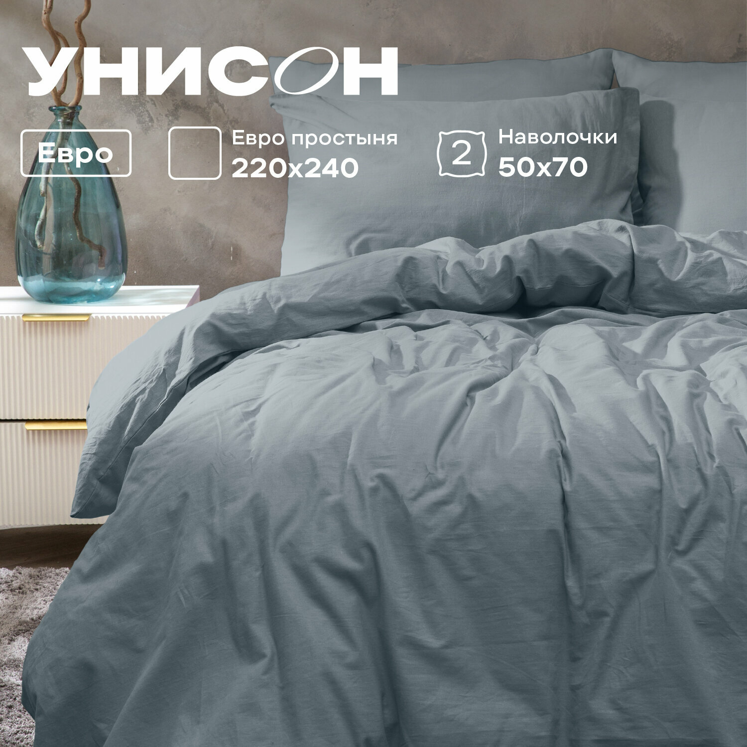 10 цен на Постельное белье Евро Унисон, Поплин, нав. 50х70, Denim (Unicolor)