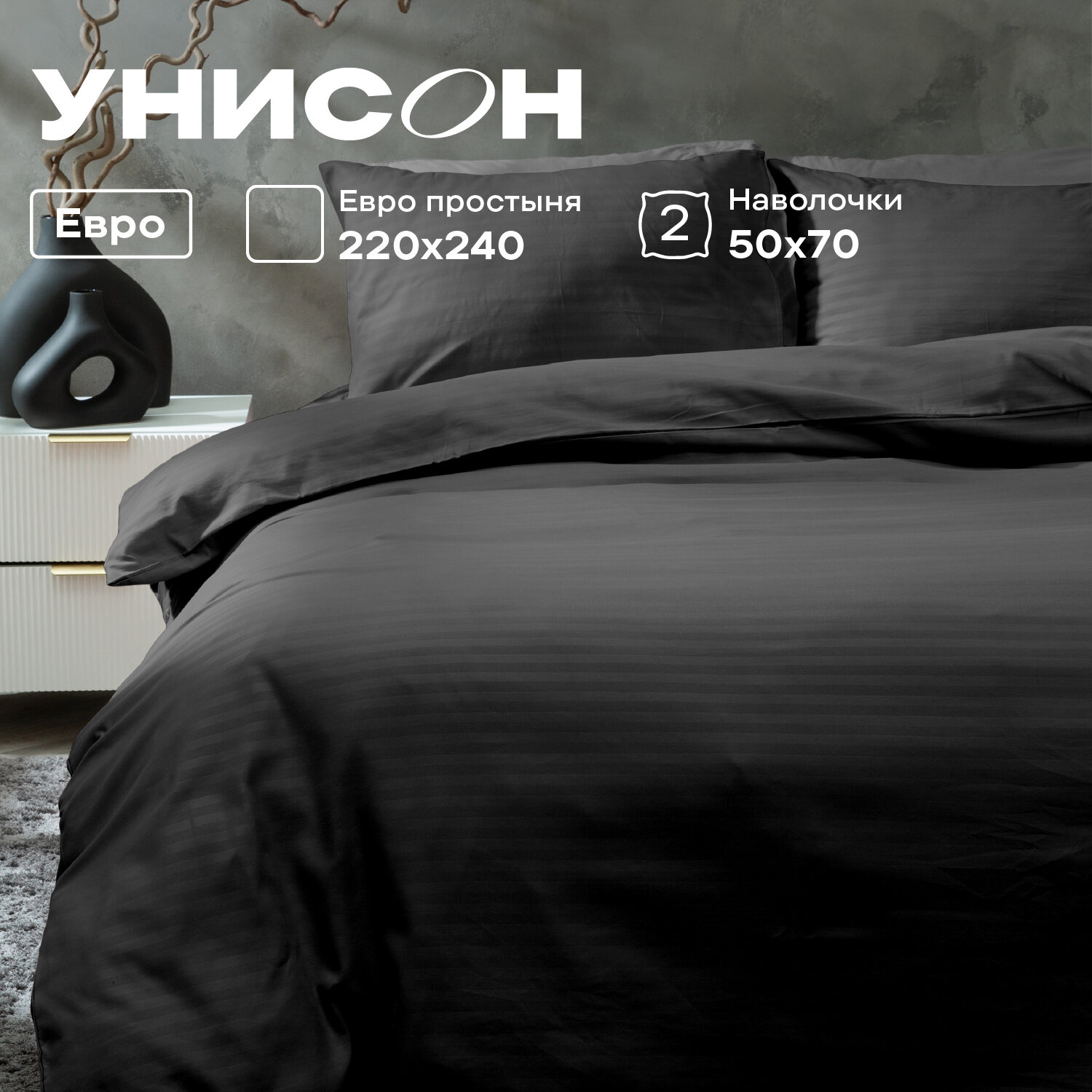 Постельное белье Евро Унисон, Поплин, нав. 50х70, Onyx (Unicolor) 2 690 ₽