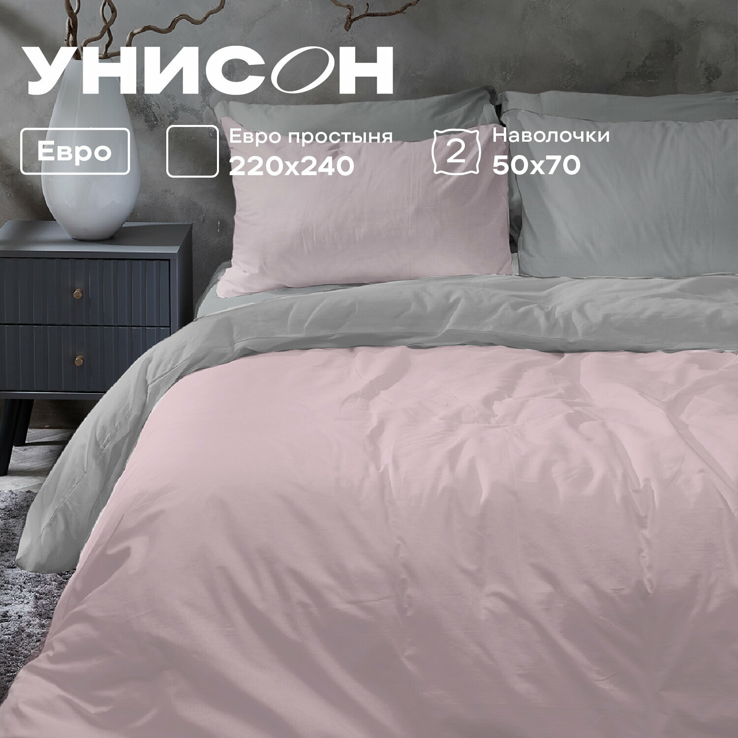 10 цен на Постельное белье Евро Унисон, Поплин, нав. 50х70, Pink Grey (Unicolor)