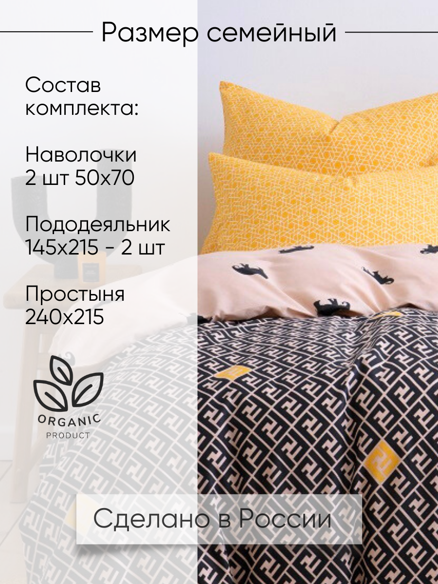 Постельное белье семейное Ночь Нежна, Фенди, 2 наволочки 50х70, ткань бязь, 100% хлопок информация: