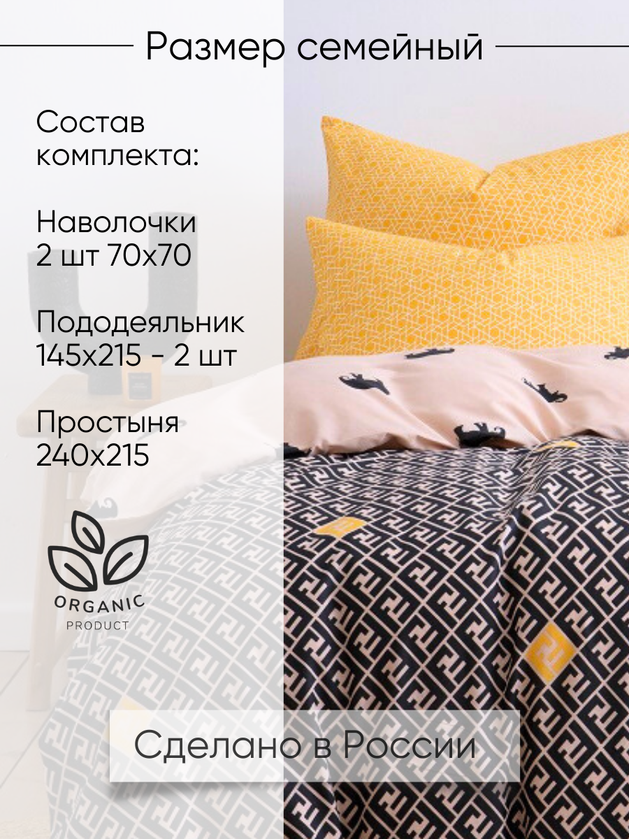 Постельное белье семейное Ночь Нежна, Фенди, 2 наволочки 70х70, ткань бязь, 100% хлопок информация: