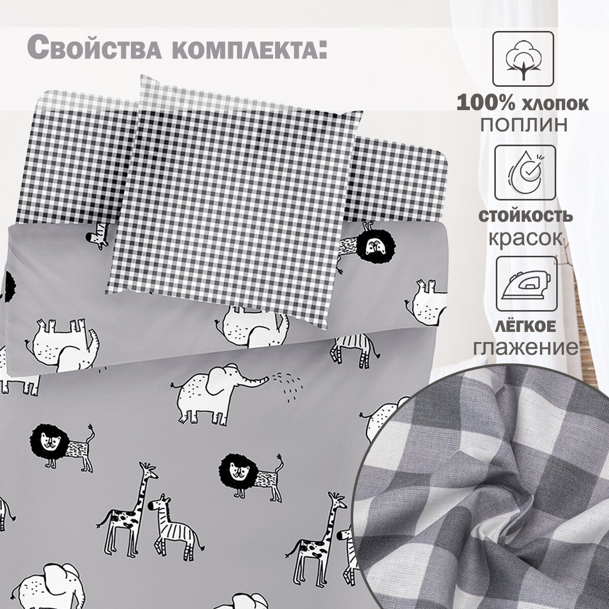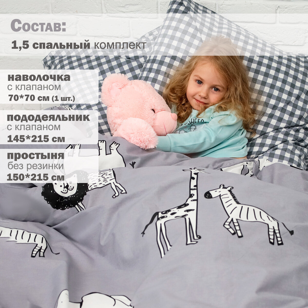 Постельное белье 1.5-спальное BRAVO KIDS DREAMS Мадагаскар / хлопок / поплин / наволочка 70*70 /для детей ./ КПБ 1,5-спальный информация:
