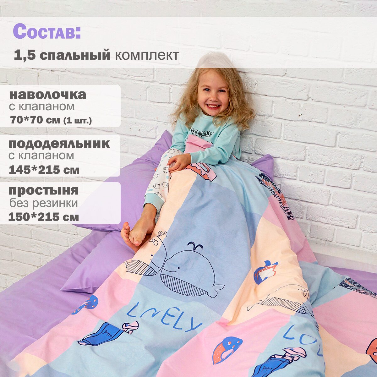 Постельное белье 1.5-спальное BRAVO KIDS DREAMS Киты / хлопок / поплин / наволочка 70*70 /для детей информация: