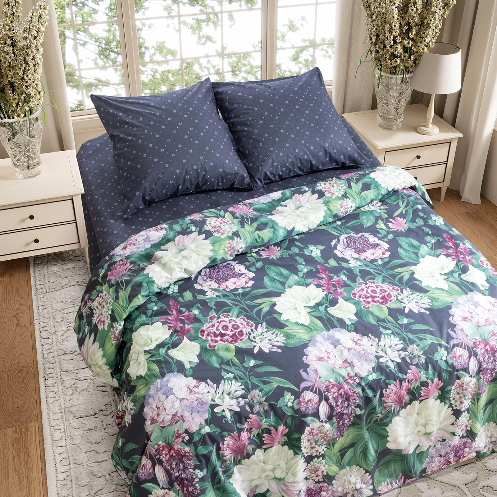 Постельное белье 2 спальное Mia Cara, Перкаль, нав. 70х70, Таинственный сад, темно-фиолетовый 2 368 ₽