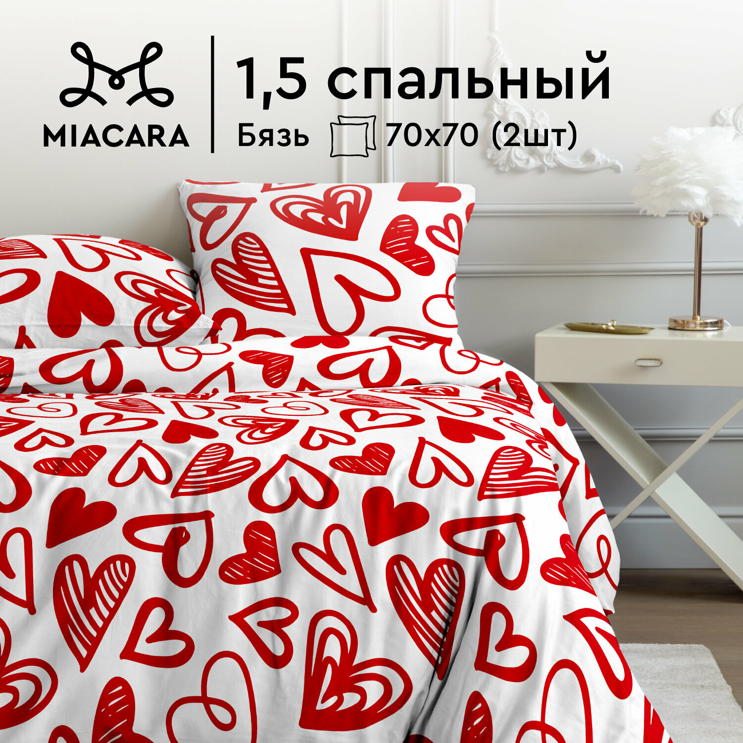 Постельное белье 1.5 спальное Mia Cara, Бязь, нав. 70х70, Бэтти информация: