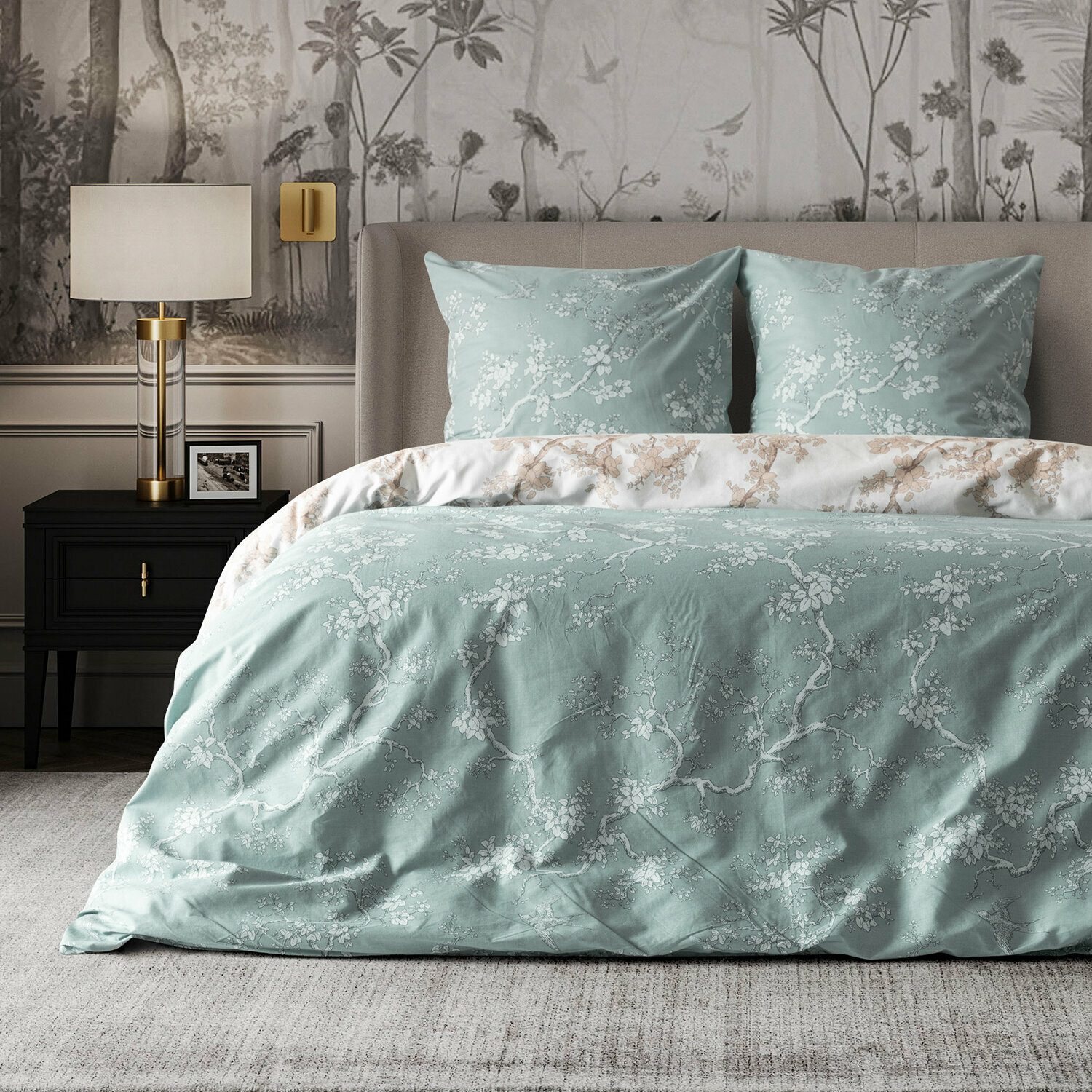 Постельное белье Евро Mia Cara, Поплин, нав. 70х70, Chinoiserie mentolo (Dolce Vita) информация: