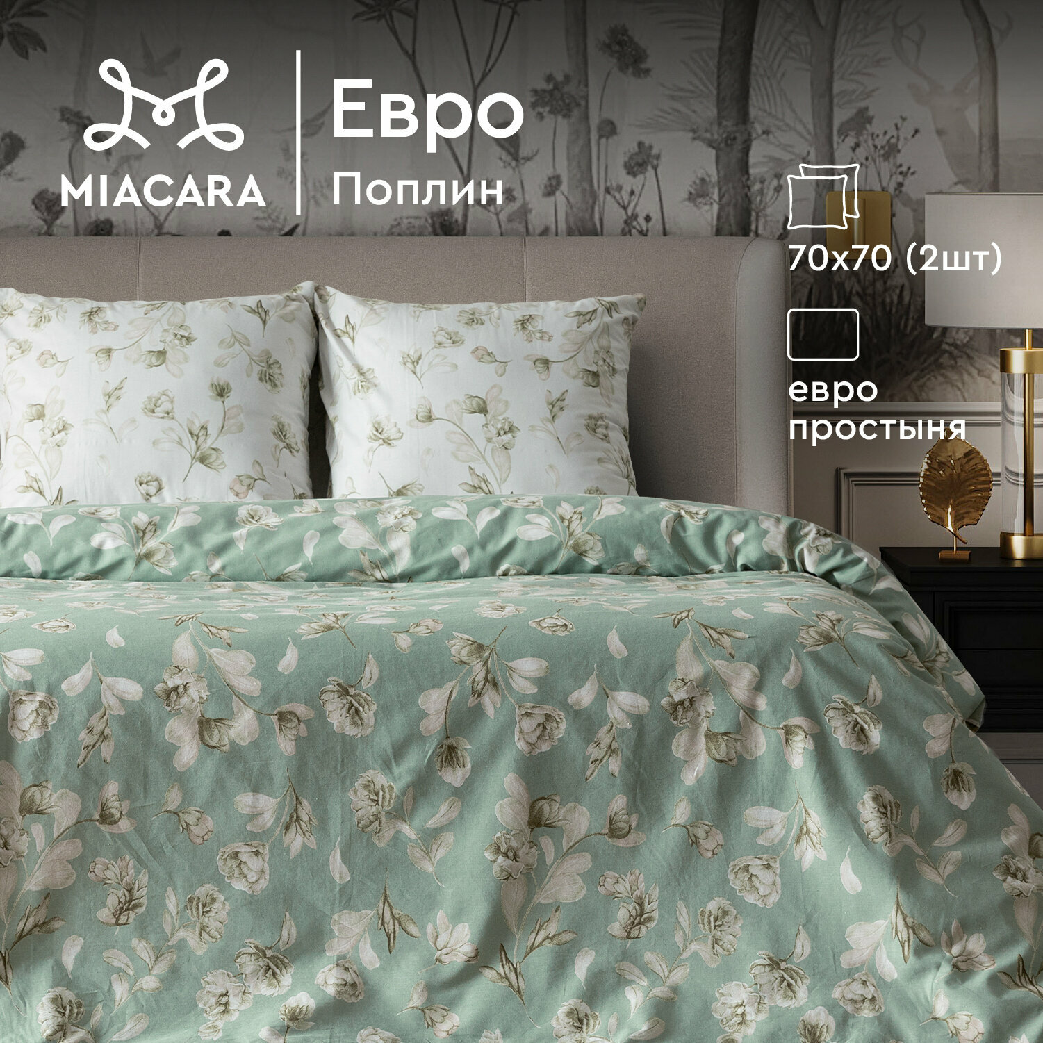 Постельное белье Евро Mia Cara, Поплин, нав. 70х70, Camilla light green (Dolce Vita) информация: