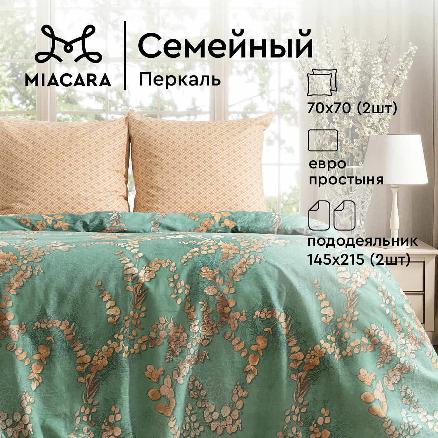 Постельное белье семейное Mia Cara, Перкаль, нав. 70х70, Таинственный сад, зеленый информация: