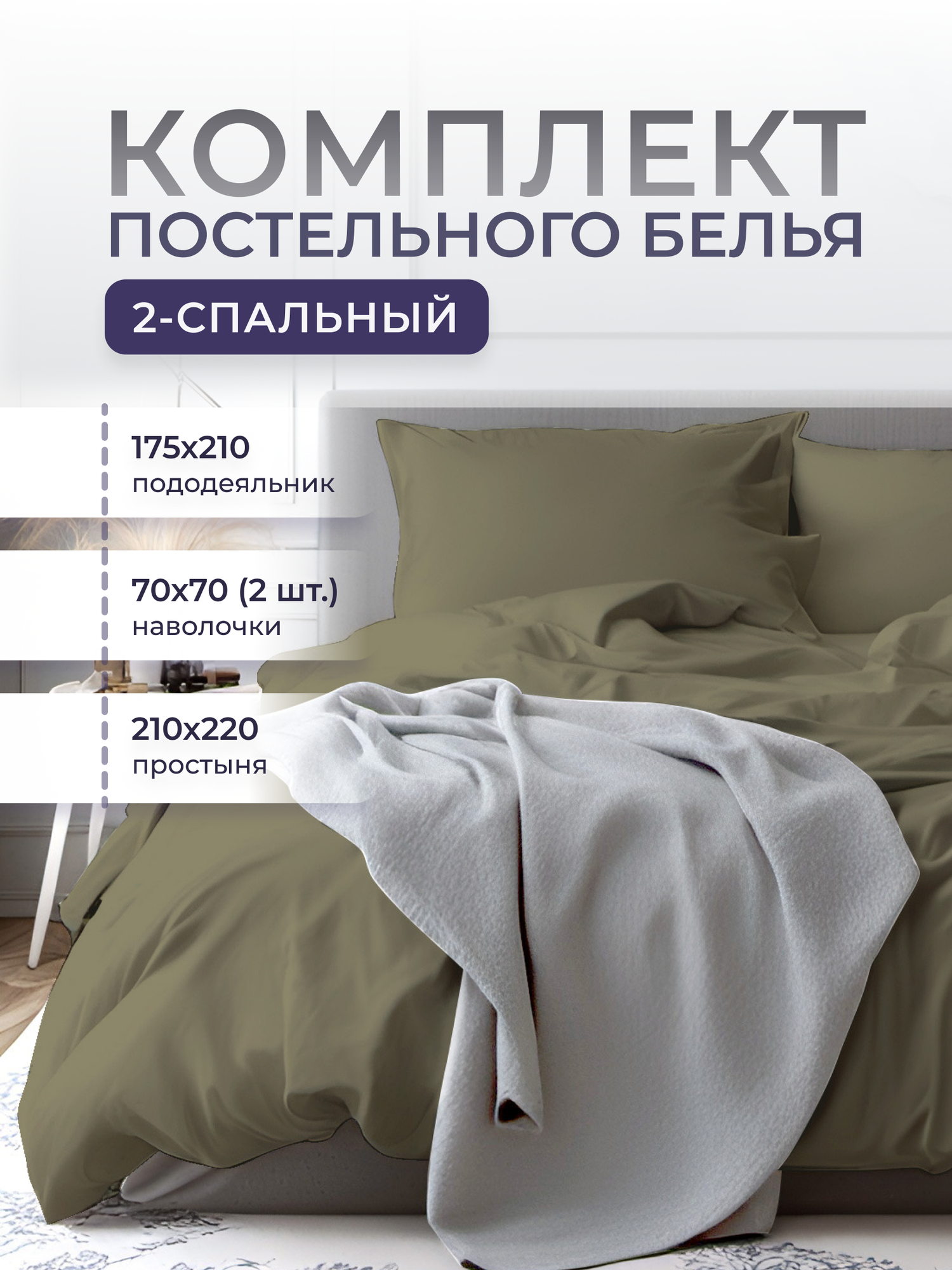 Постельное белье 2 спальное VERONA ROYAL, наволочки 70*70, цвет оливковый информация: