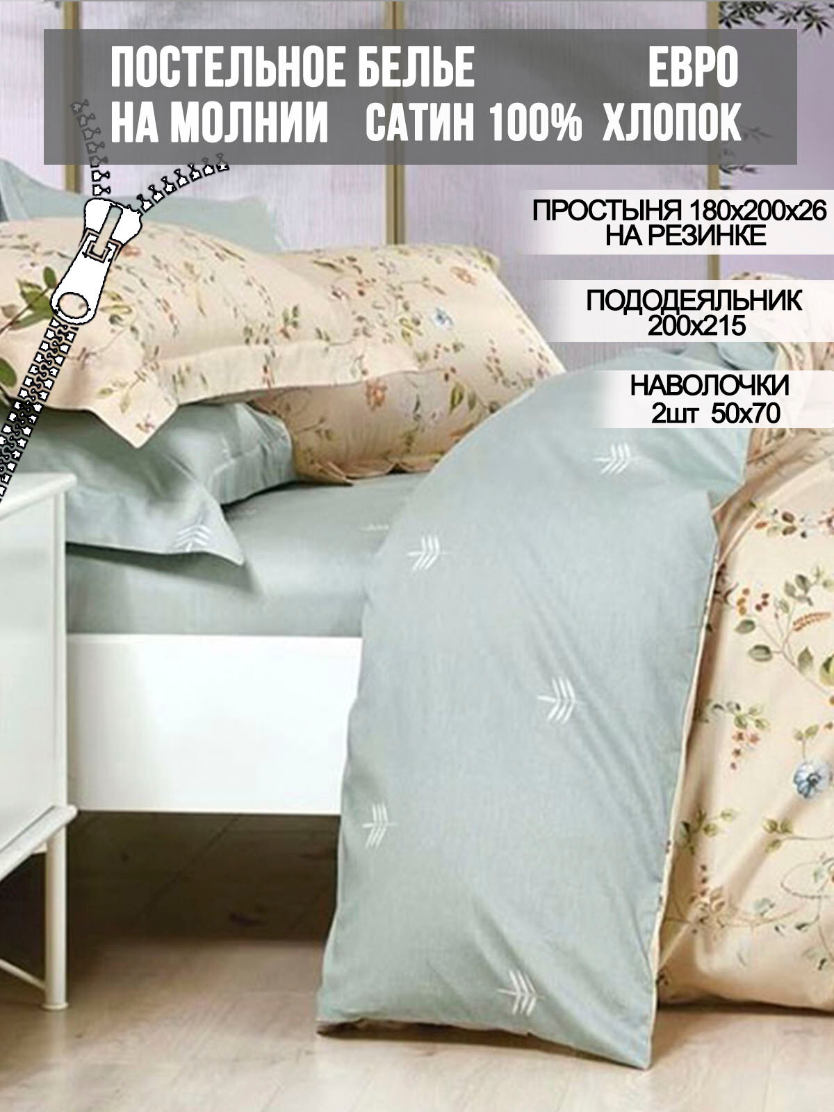 Постельное белье Milky Garden "Twigs" евро, наволочки 2шт, простынь на резинке, сатин, хлопок 100% информация: