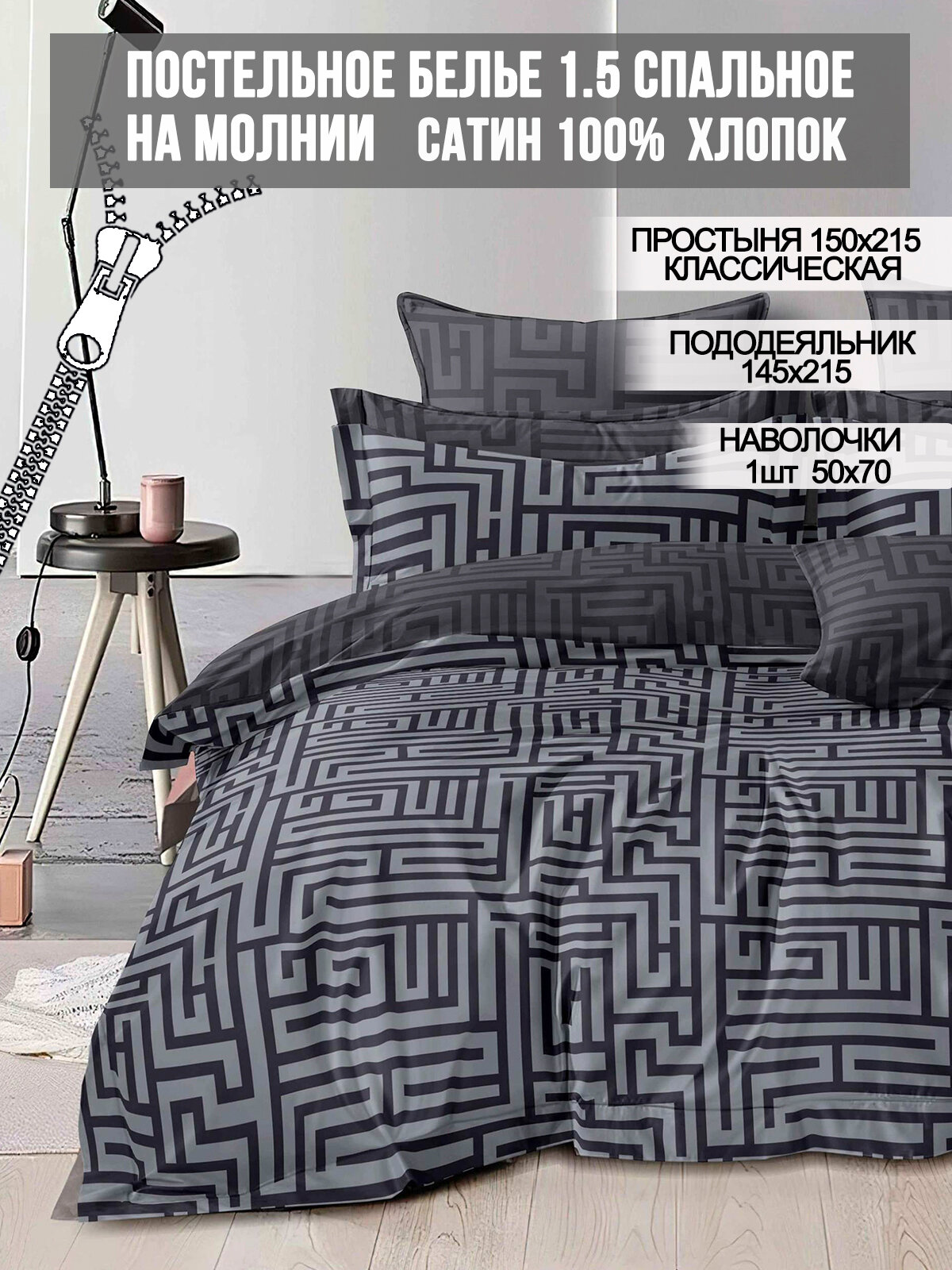 Постельное белье Сказка Сатин "Lester" 1,5-сп наволочка 50х70 1шт Простынь на резинке 90х200 см Пододеяльник 145х215 см