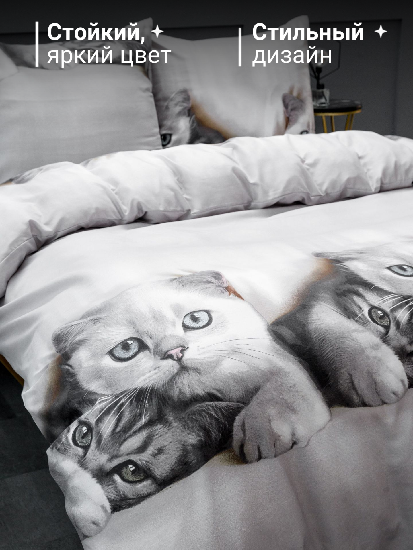 Отзывы на Постельное белье евро макси Павлина Котики белые, Полисатин, наволочки 70x70