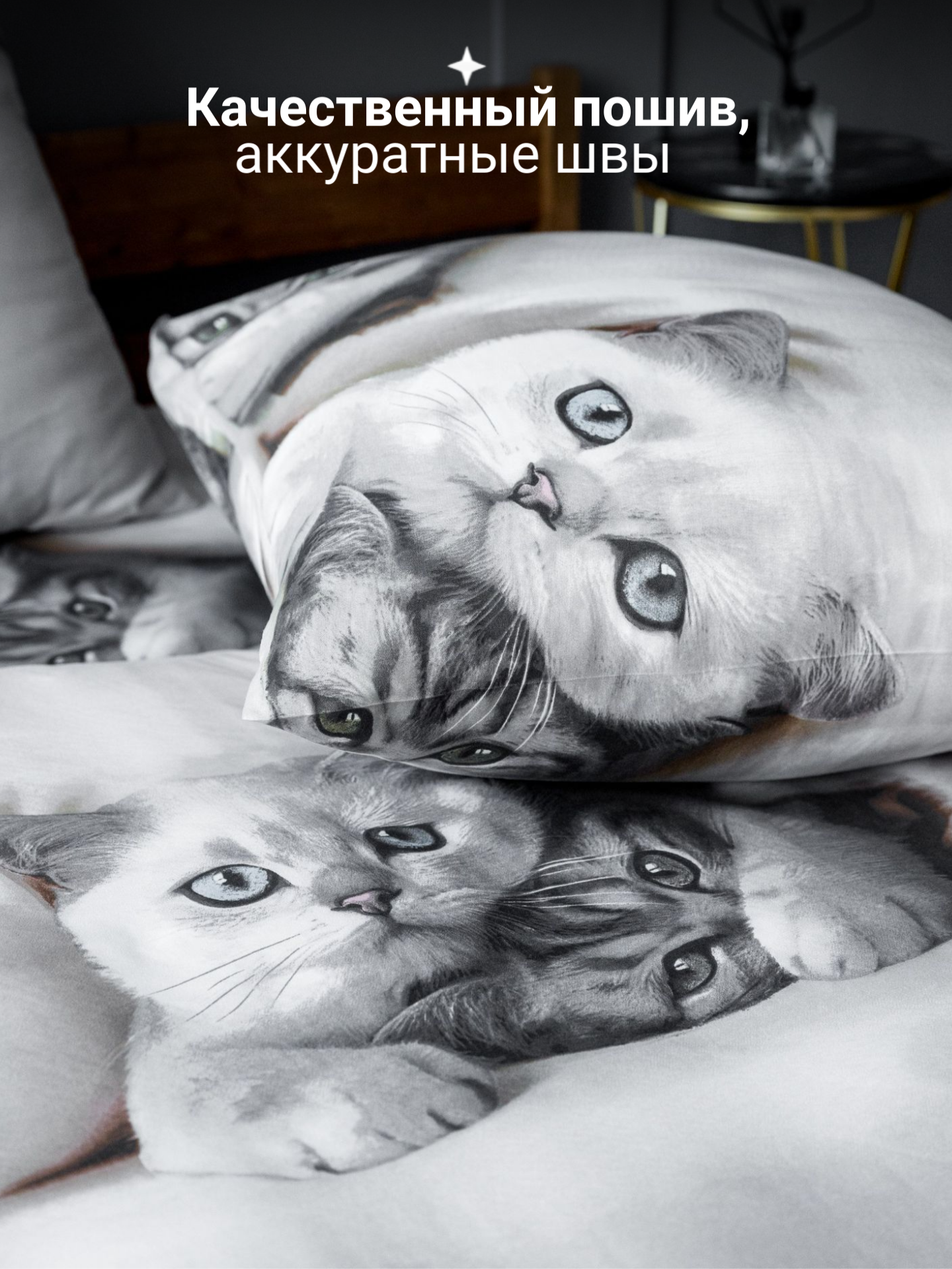 Постельное белье 1.5 спальное Павлина Черный котик, Полисатин, наволочки 70x70 1 212 ₽