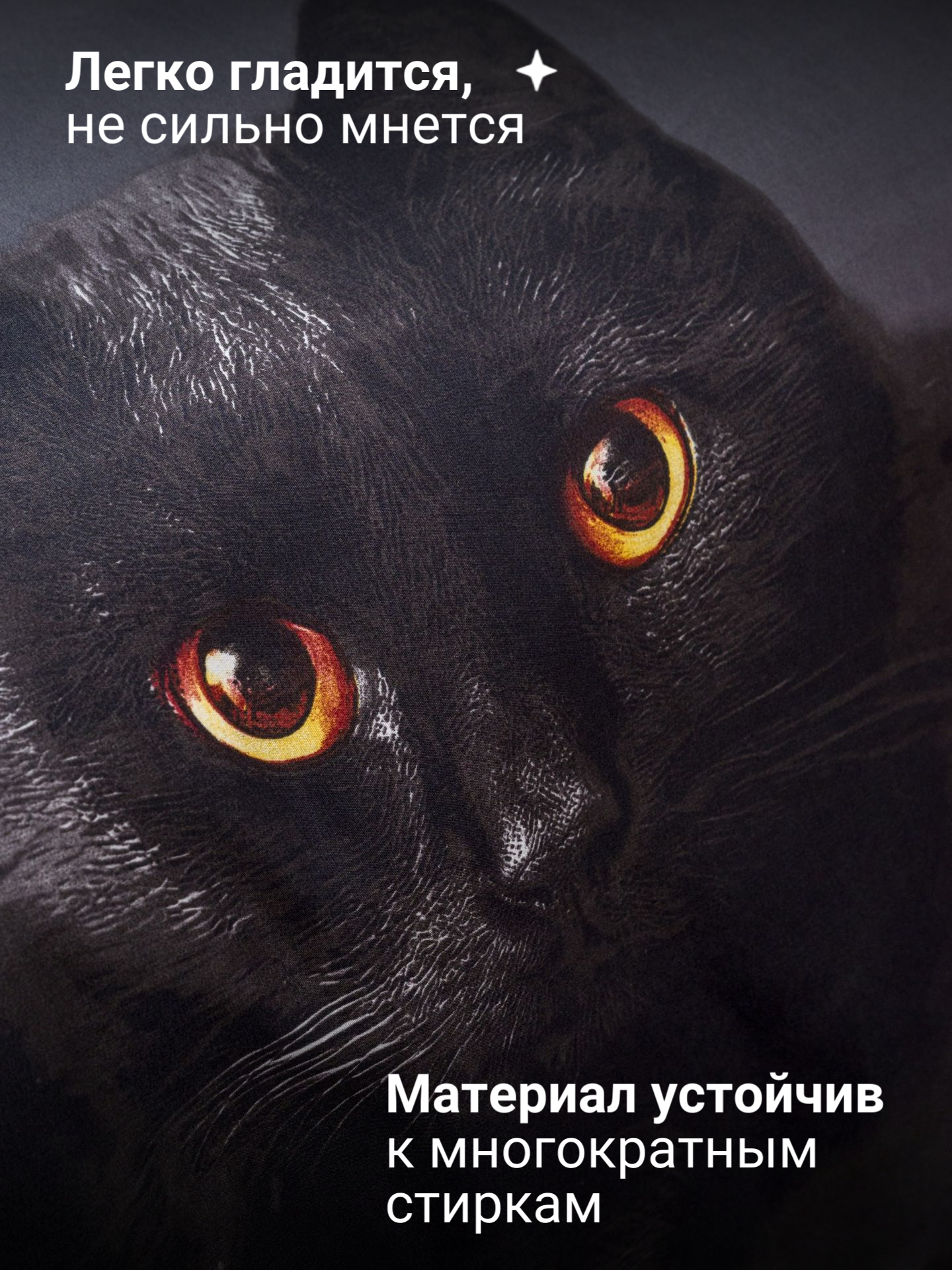Постельное белье евро макси Павлина Черный котик, Полисатин, наволочки 70x70 1 598 ₽