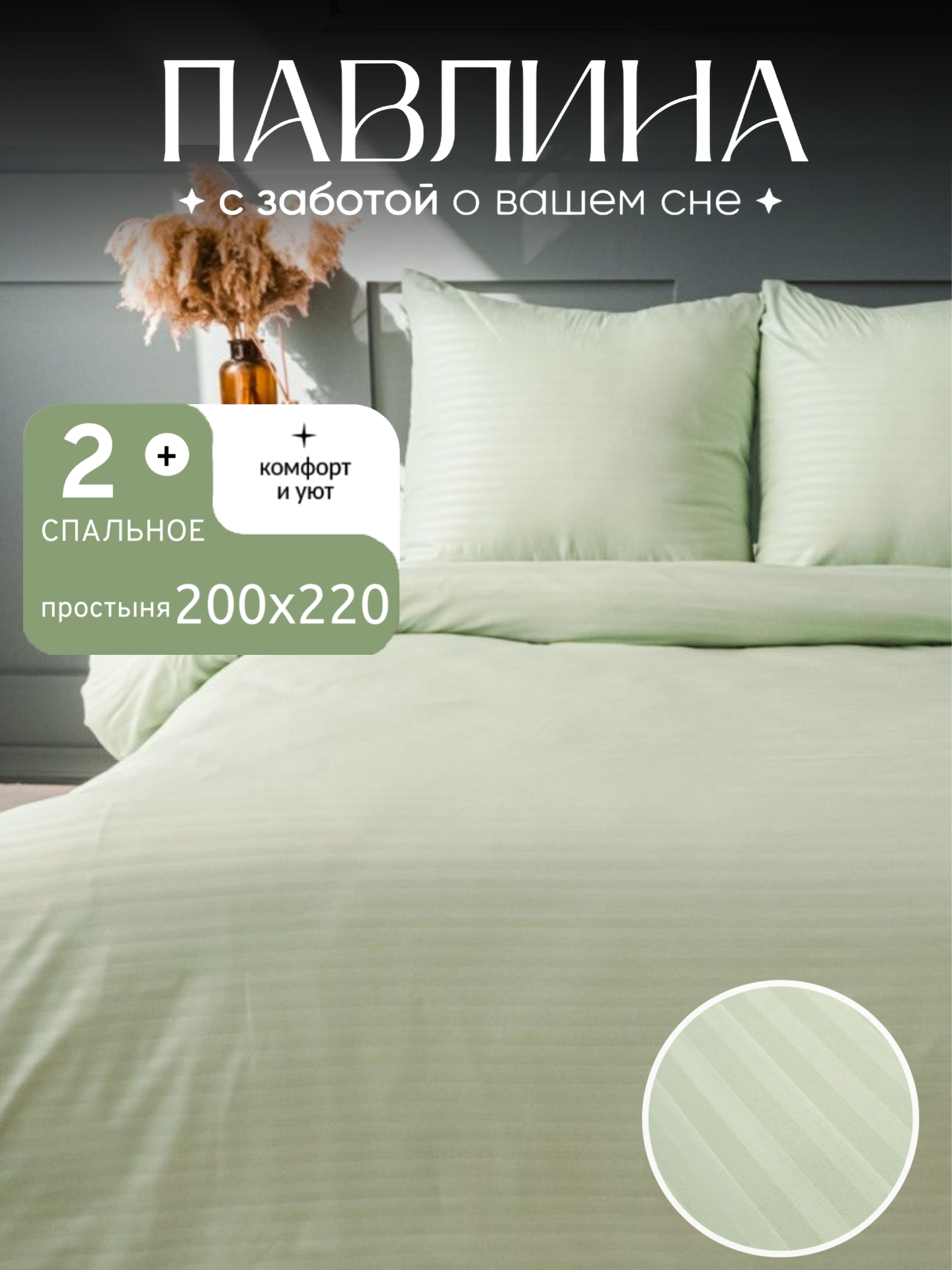 Постельное белье 2 спальное с европростыней Павлина Полисатин Страйп (оливковый) информация: