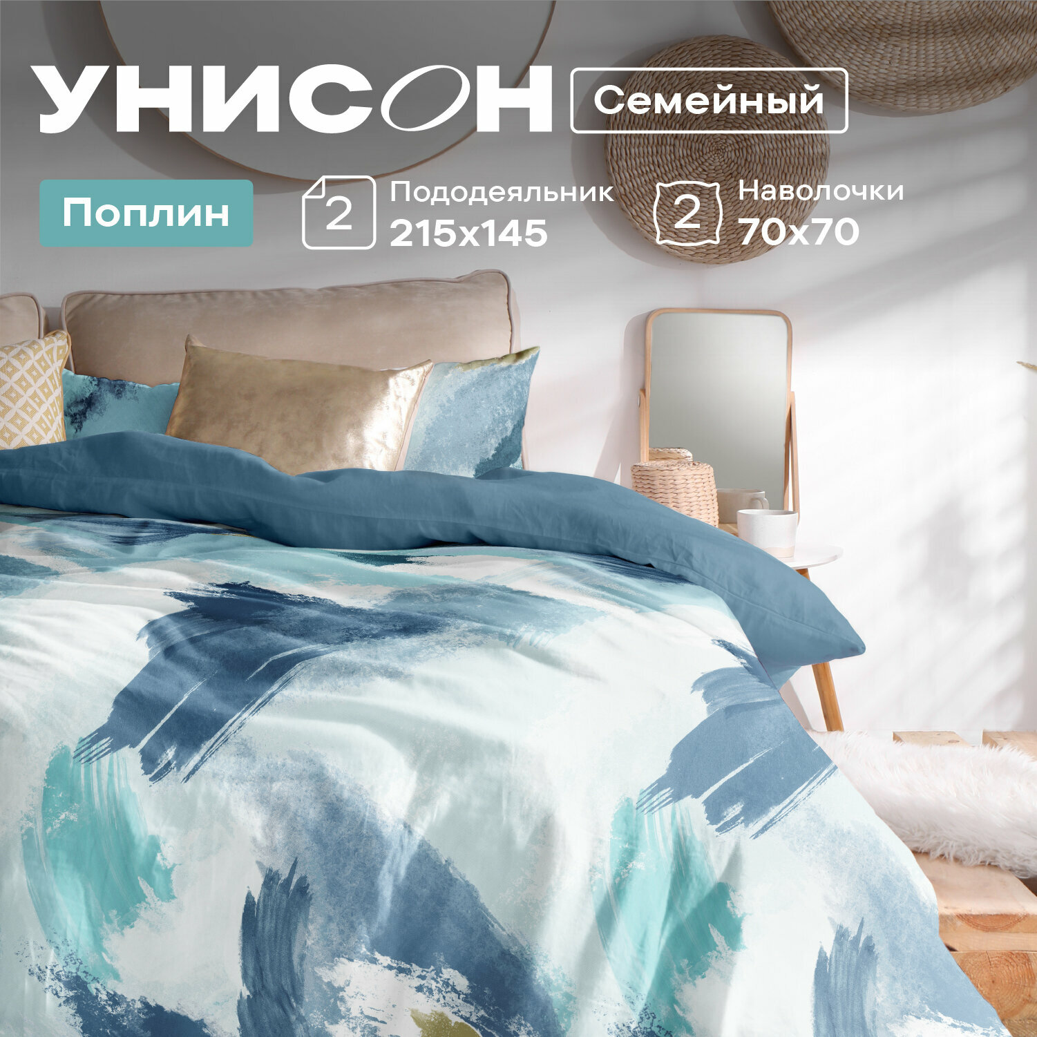 Унисон Комплект постельного белья, Поплин, Семейный, с двумя 2 пододеяльниками 145х215, нав. 70х70, Morachka 3 319 ₽