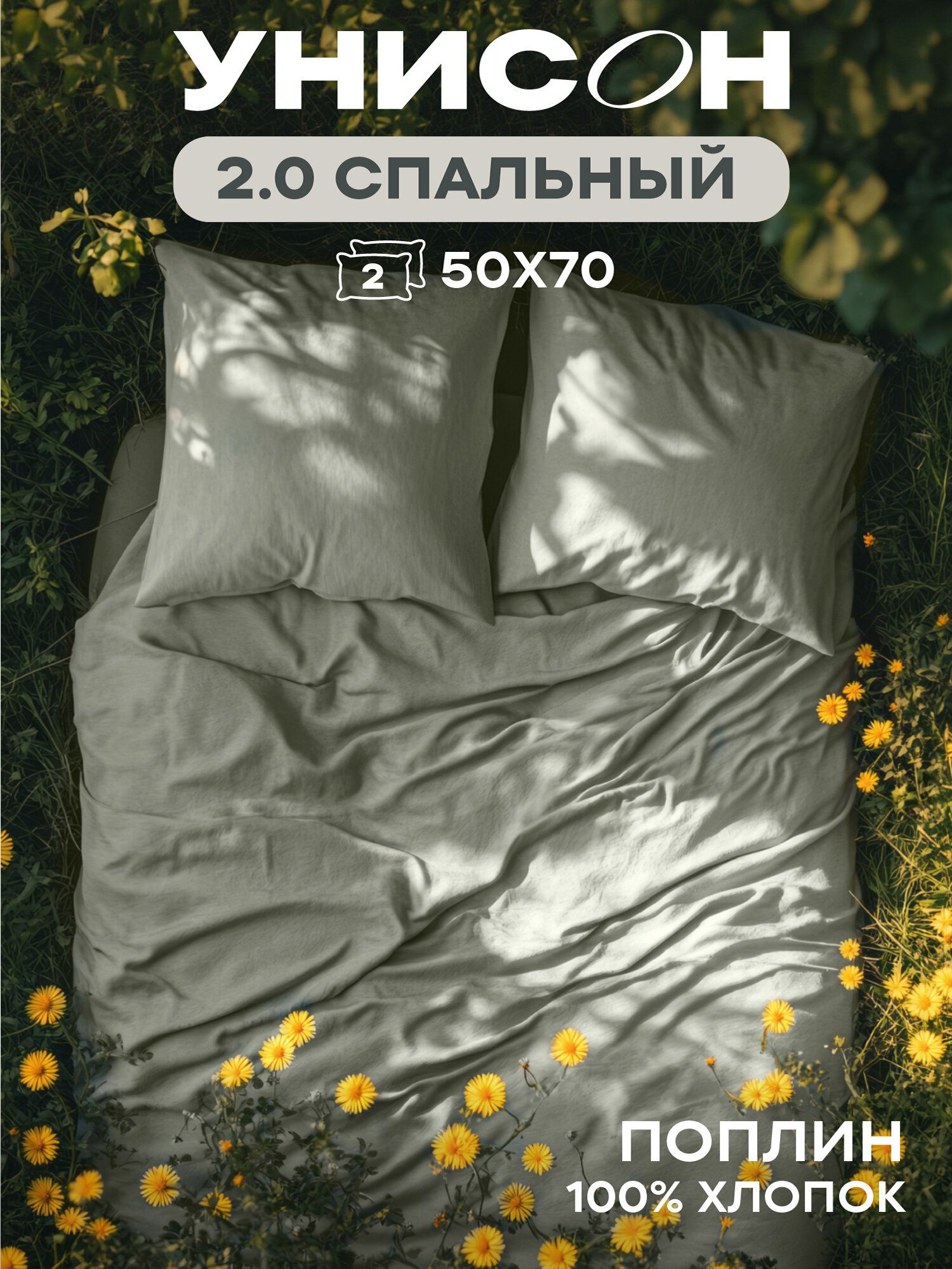 Постельное белье 2 спальное Унисон, Поплин, нав. 50х70, Laurel 2 350 ₽
