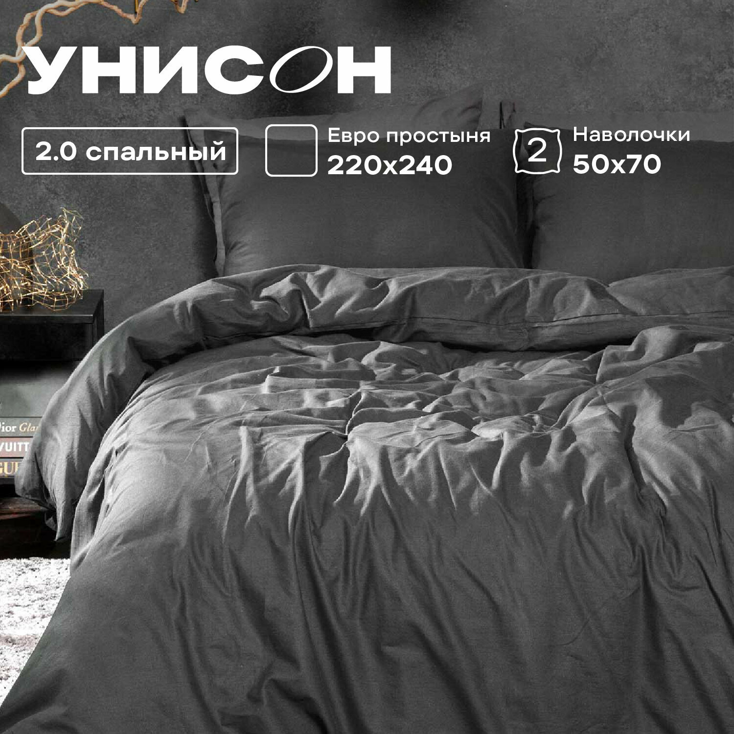 10 цен на Постельное белье 2 спальное Унисон, Поплин, нав. 50х70, Onyx (Unicolor)