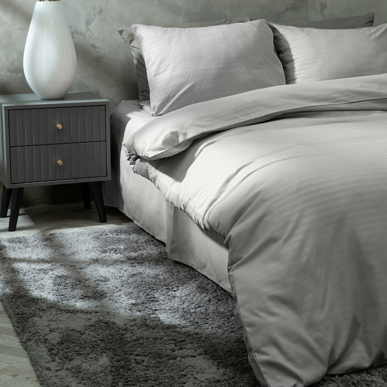 Постельное белье 2 спальное Унисон, Поплин, нав. 50х70, Graphite (Stripe) 2 155 ₽
