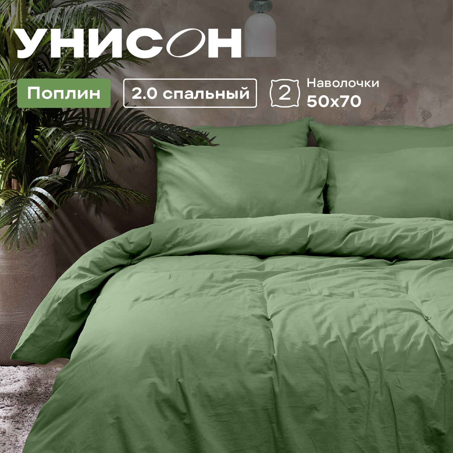 Постельное белье 2 спальное Унисон, Поплин, нав. 50х70, Laurel информация: