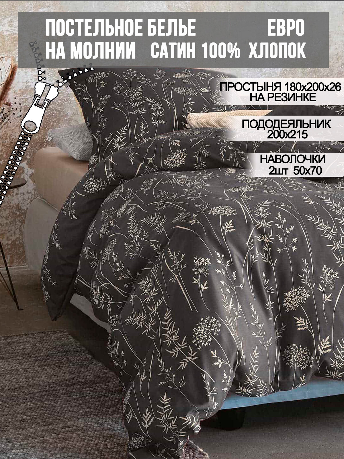 Постельное белье Milky Garden "Вечерний луг" евро, наволочки 2 шт, простынь на резинке, сатин, хлопок 100% информация: