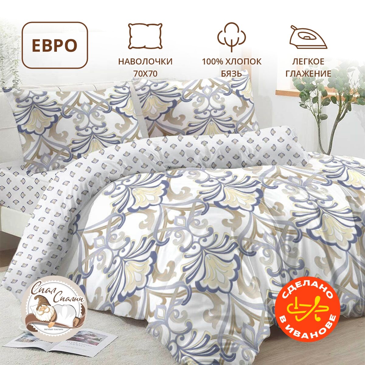 Постельное белье евро спал спалыч бязь Гриса, хлопок, наволочки 70*70 - 2 шт информация:
