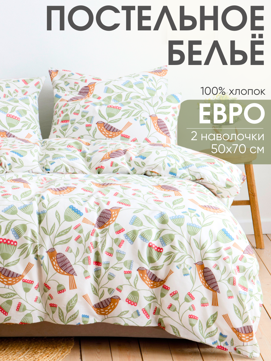 Постельное белье евро, наволочки 70х70 ТМ Ночь Нежна Весенние деревья, 100% хлопок, ткань поплин 2 520 ₽