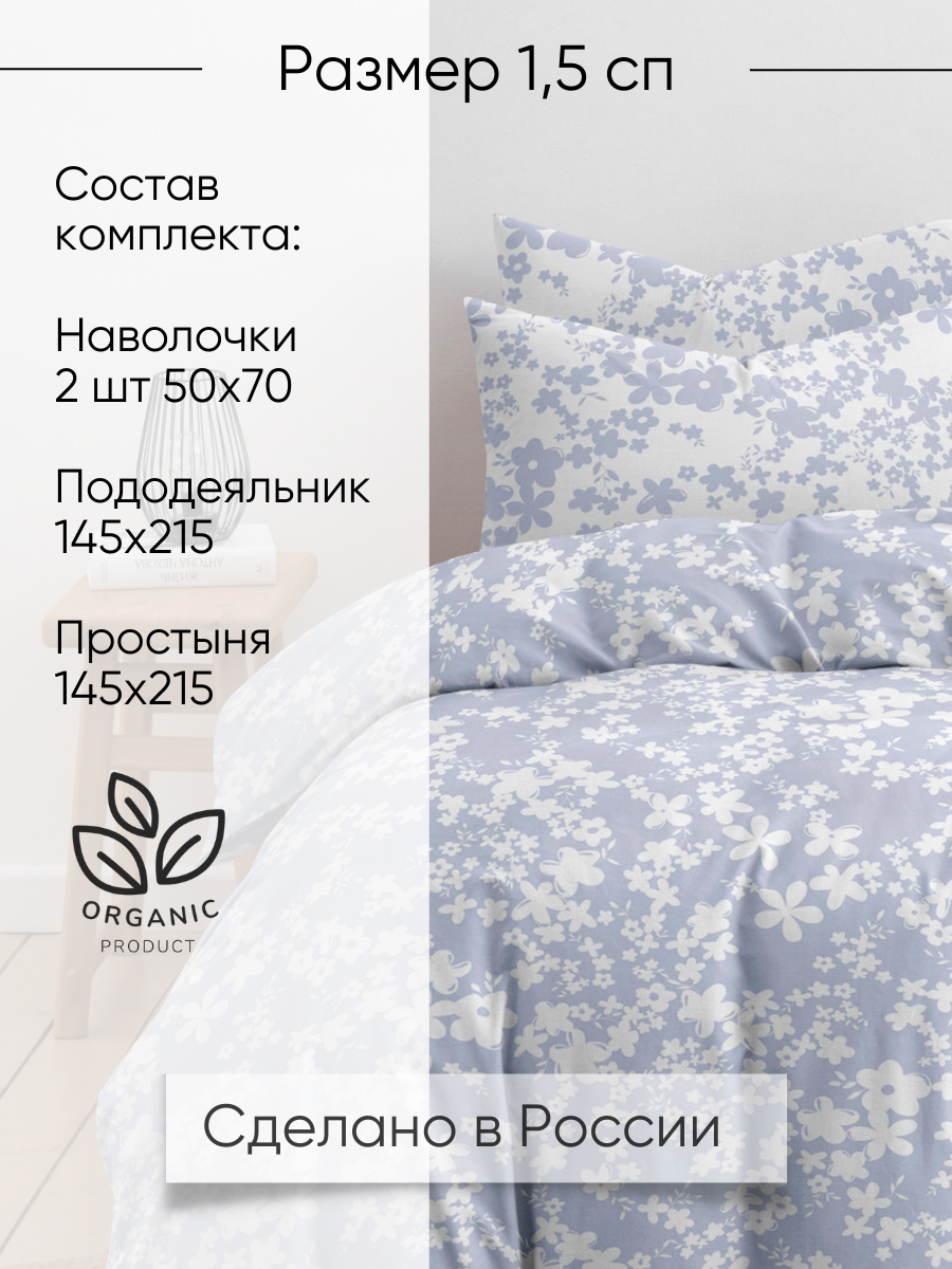 Постельное белье 1 5 спальное, наволочки 50х70 Ночь Нежна Рикки, 100% хлопок, ткань поплин 2 060 ₽