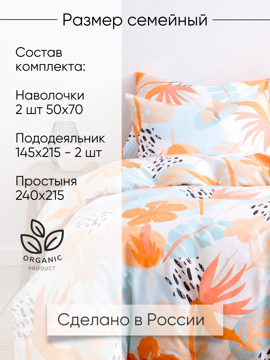 Постельное белье Ночь Нежна, Тропическое бохо, 1 5 спальное, 2 наволочки 70х70, ткань поплин, 100% хлопок 1 899 ₽
