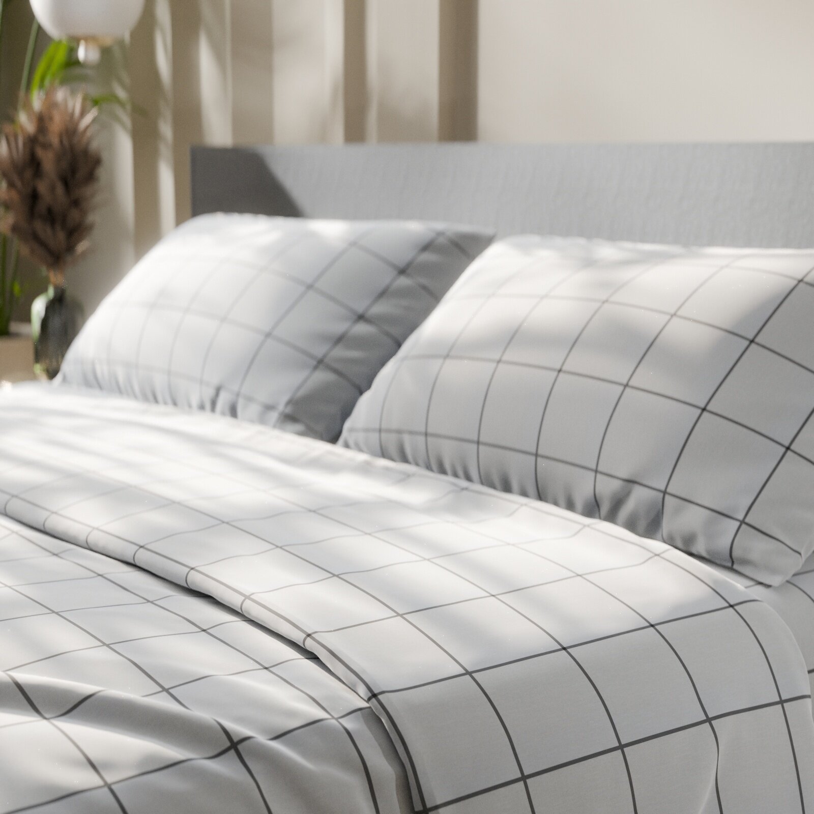 Постельное бельё Этель 1.5 спальное (1.5 спальный) "Клетка" цвет серый 143х215, 150х214, 50х70см-2 шт, бязь, 125г/м2