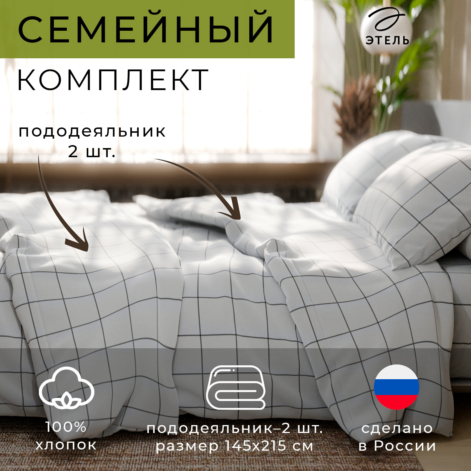 Отзывы на Постельное бельё Этель дуэт семейное (семейное белье) "Клетка" цвет белый 143х215-2 шт, 220х240, 50х70-2 шт, бязь, 125 г/м2