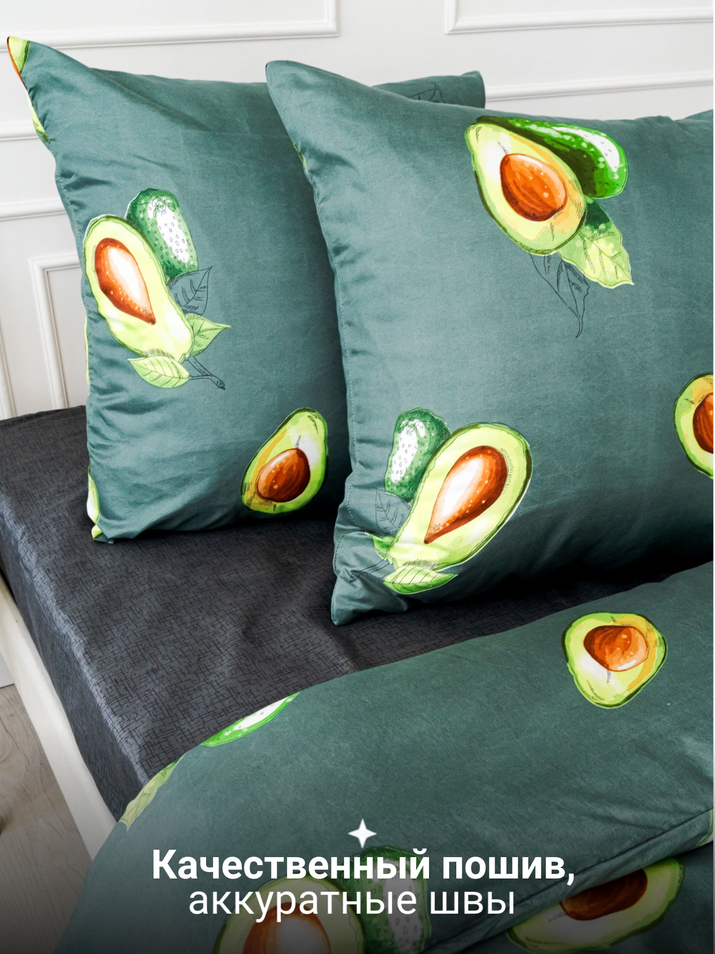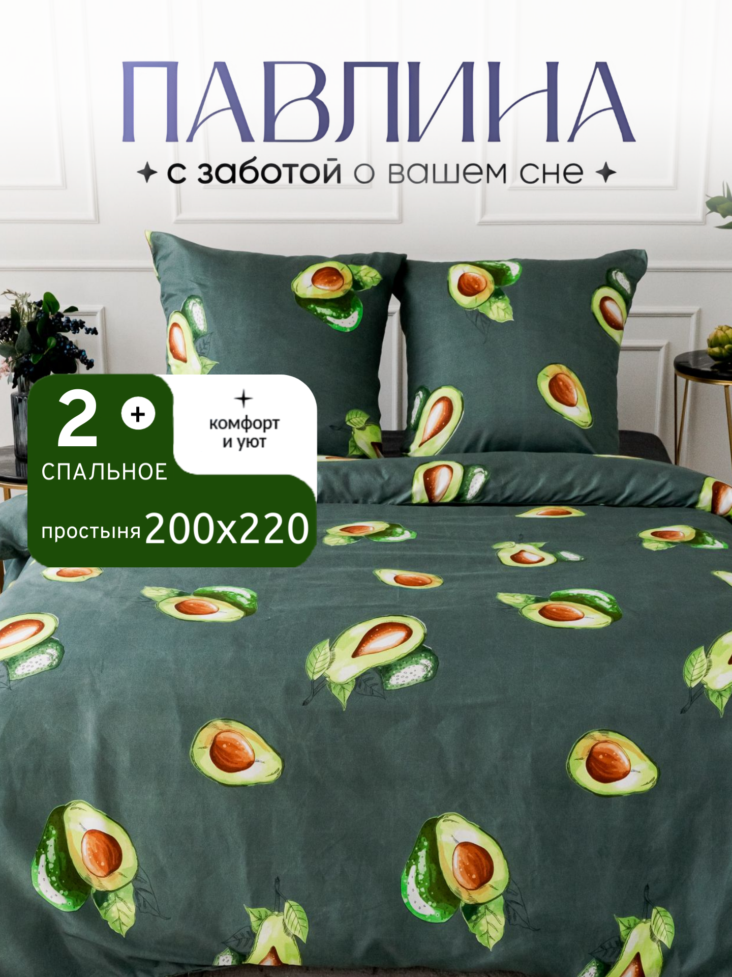 10 цен на Постельное белье 2 спальное с европростыней Павлина Авокадо, Полисатин, наволочки 70x70
