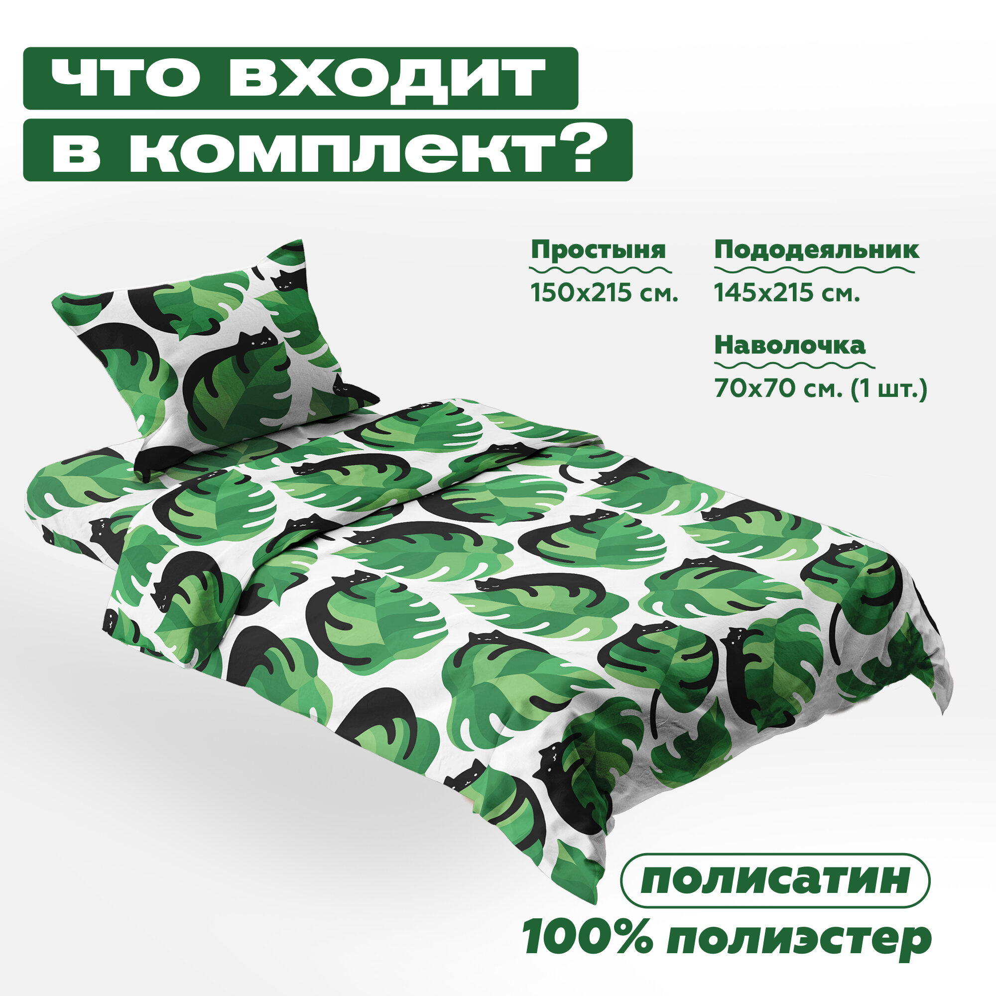 10 цен на Постельное белье 1.5 спальное 4YOU by Crazy Getup, Полисатин, нав. 70х70, Cat leaf