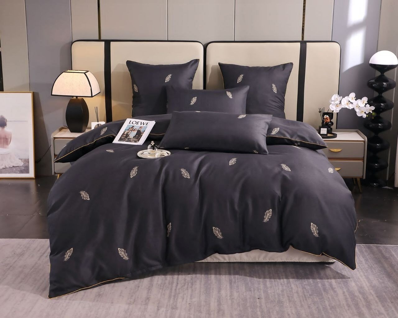 Комплект постельного белья ALANNA Евро Сатин - Черный - Перья / Пододеяльник 200x220 см. / Простыня 220x240 см. информация: