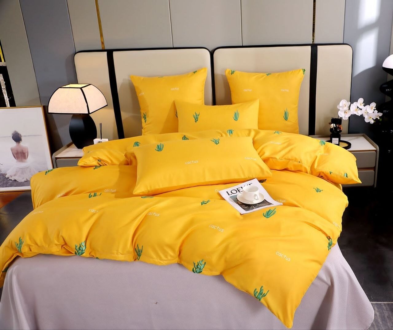 Комплект постельного белья ALANNA Евро Сатин - Желтый-Кактус / Пододеяльник 200x220 см. / Простыня 220x240 см. информация:
