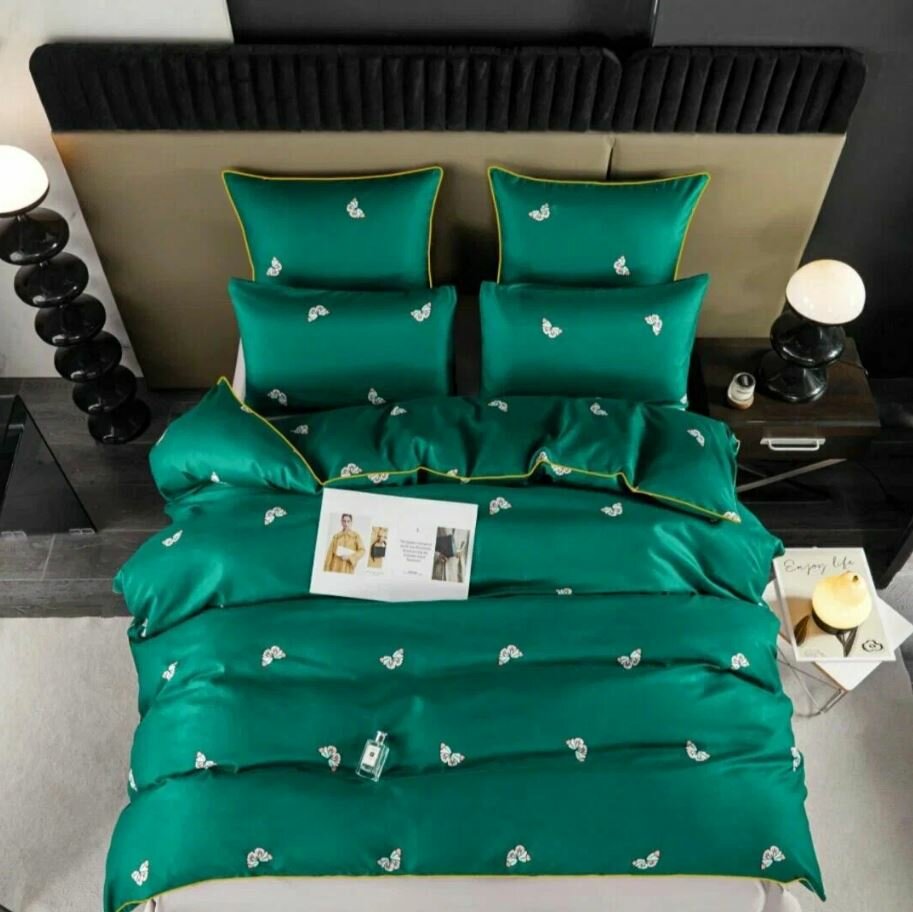Отзывы на Комплект постельного белья ALANNA Евро Сатин - Зеленый Бабочки / Пододеяльник 200x220 см. / Простыня 220x240 см.