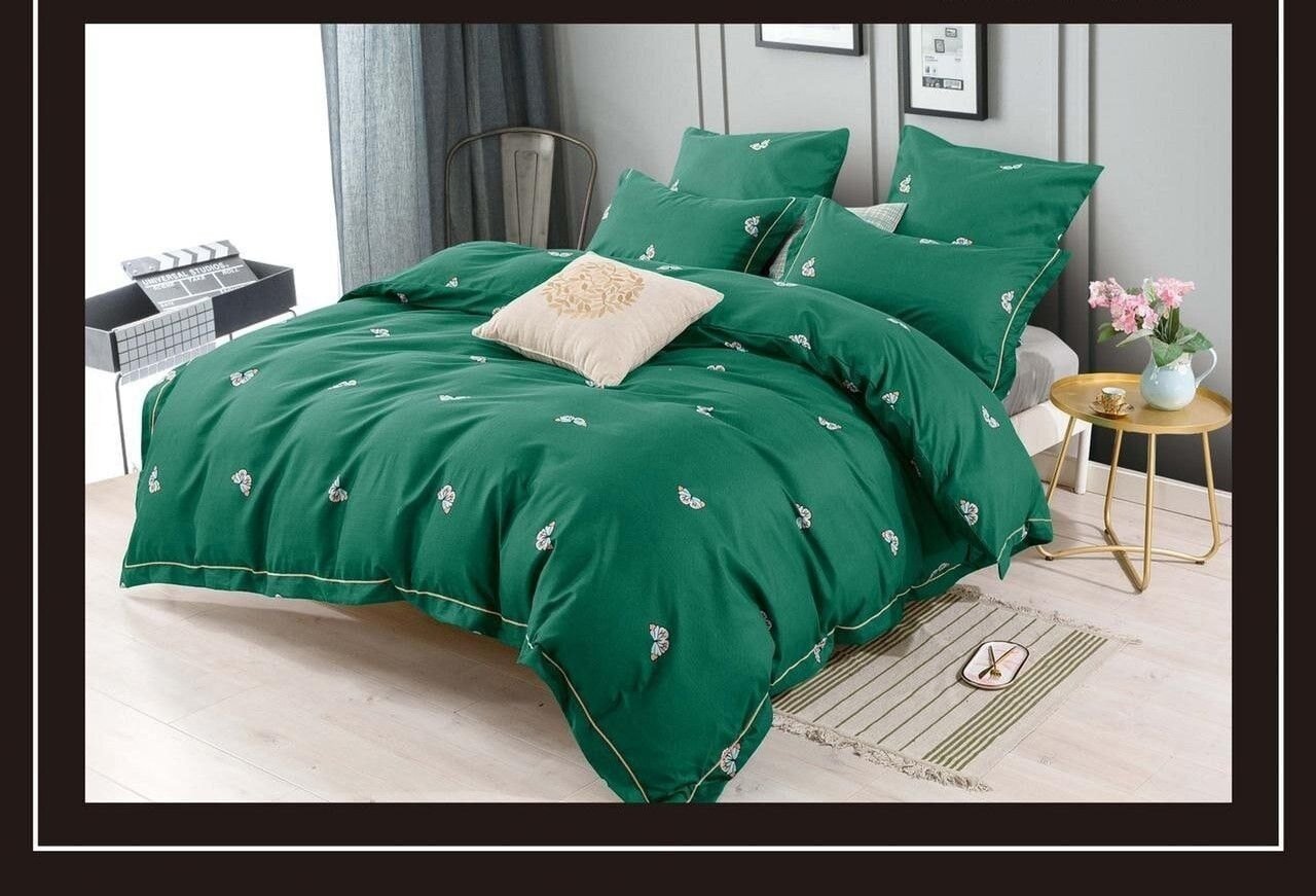 Комплект постельного белья ALANNA Евро Сатин - Зеленый Бабочки / Пододеяльник 200x220 см. / Простыня 220x240 см. информация:
