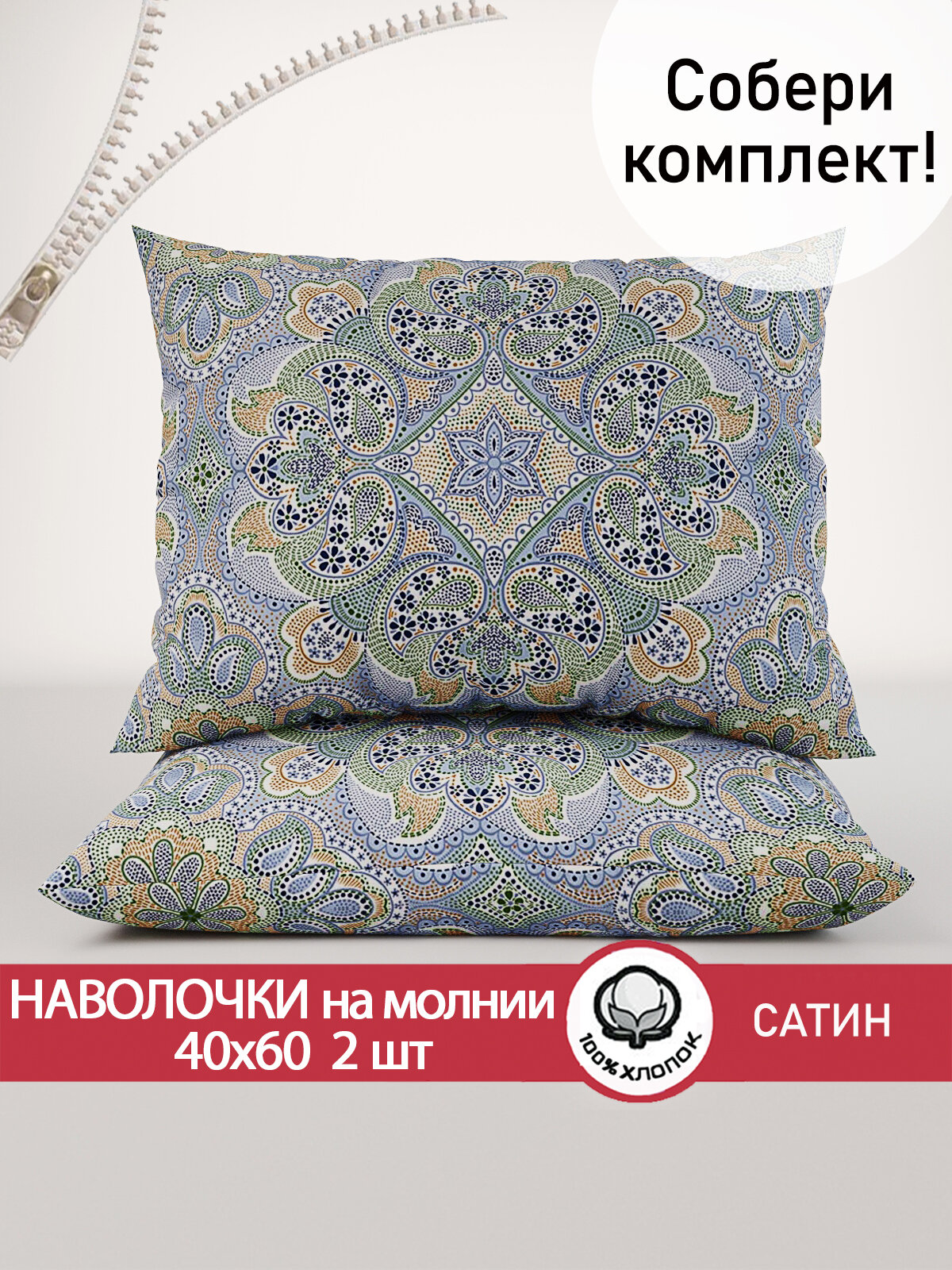Наволочка 2шт на молнии 40х60 см Сказка Сатин "Бисер", ткань сатин, 100% хлопок информация: