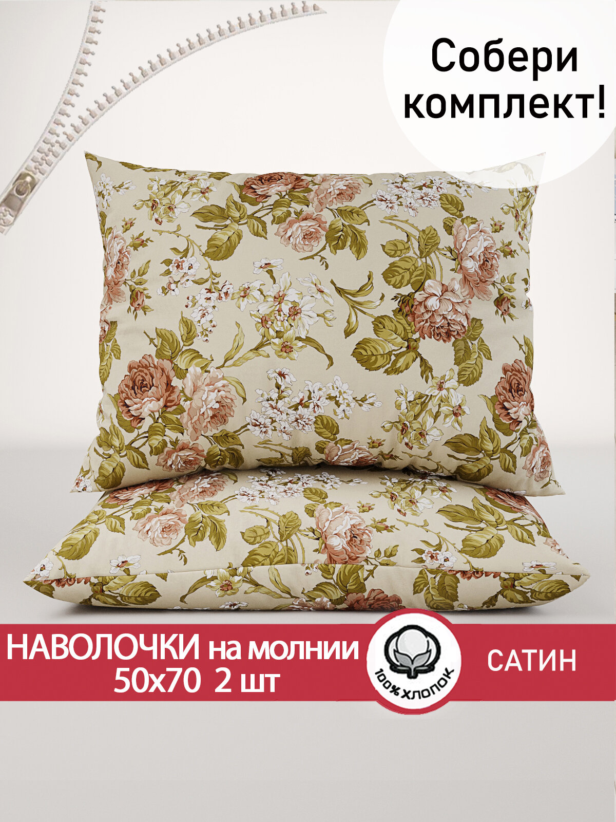 Наволочка 2шт на молнии 50х70 см Сказка Сатин "Винтаж", ткань сатин, 100% хлопок информация:
