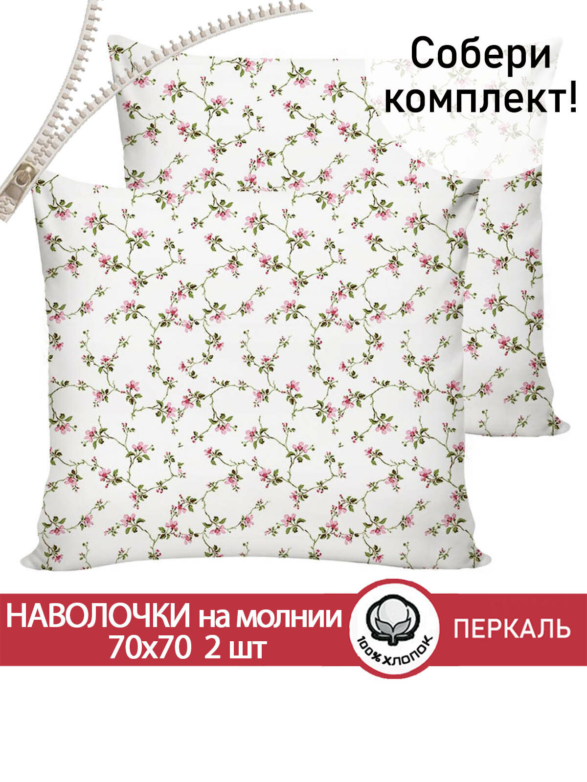 Отзывы на Наволочка 2шт на молнии 70х70 см Сказка "Весенние цветы", ткань перкаль, 100% хлопок