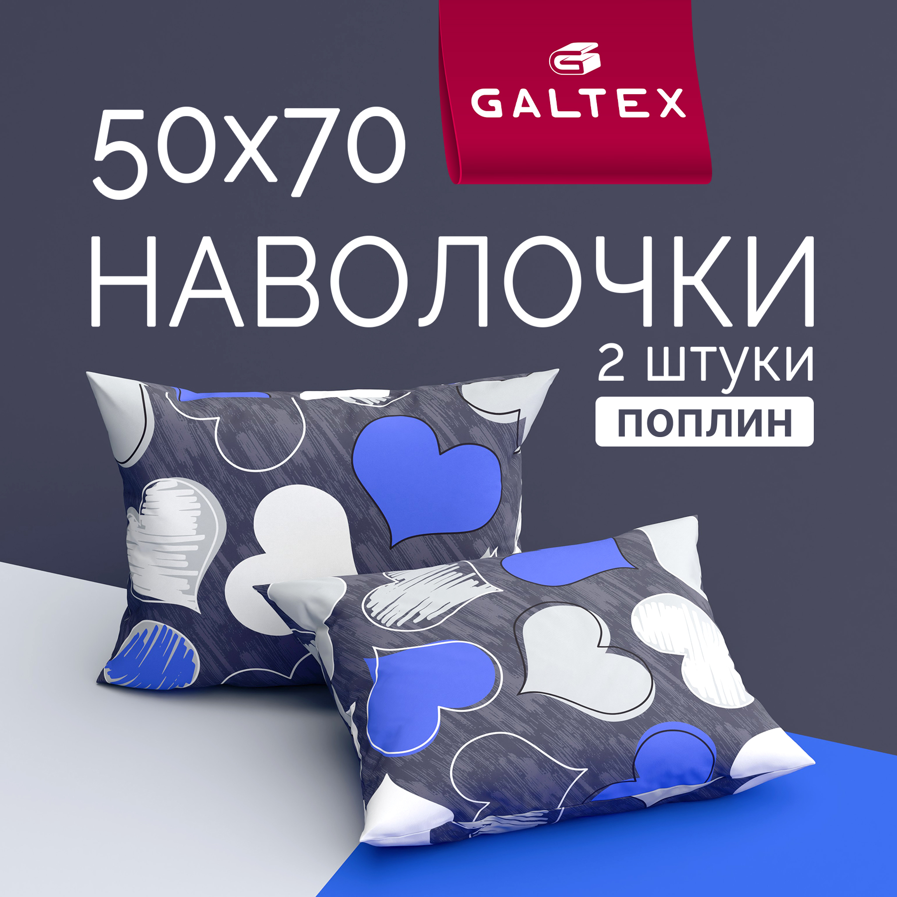 10 цен на Наволочки 50x70 2 шт Galtex Романтика синий поплин 100% хлопок