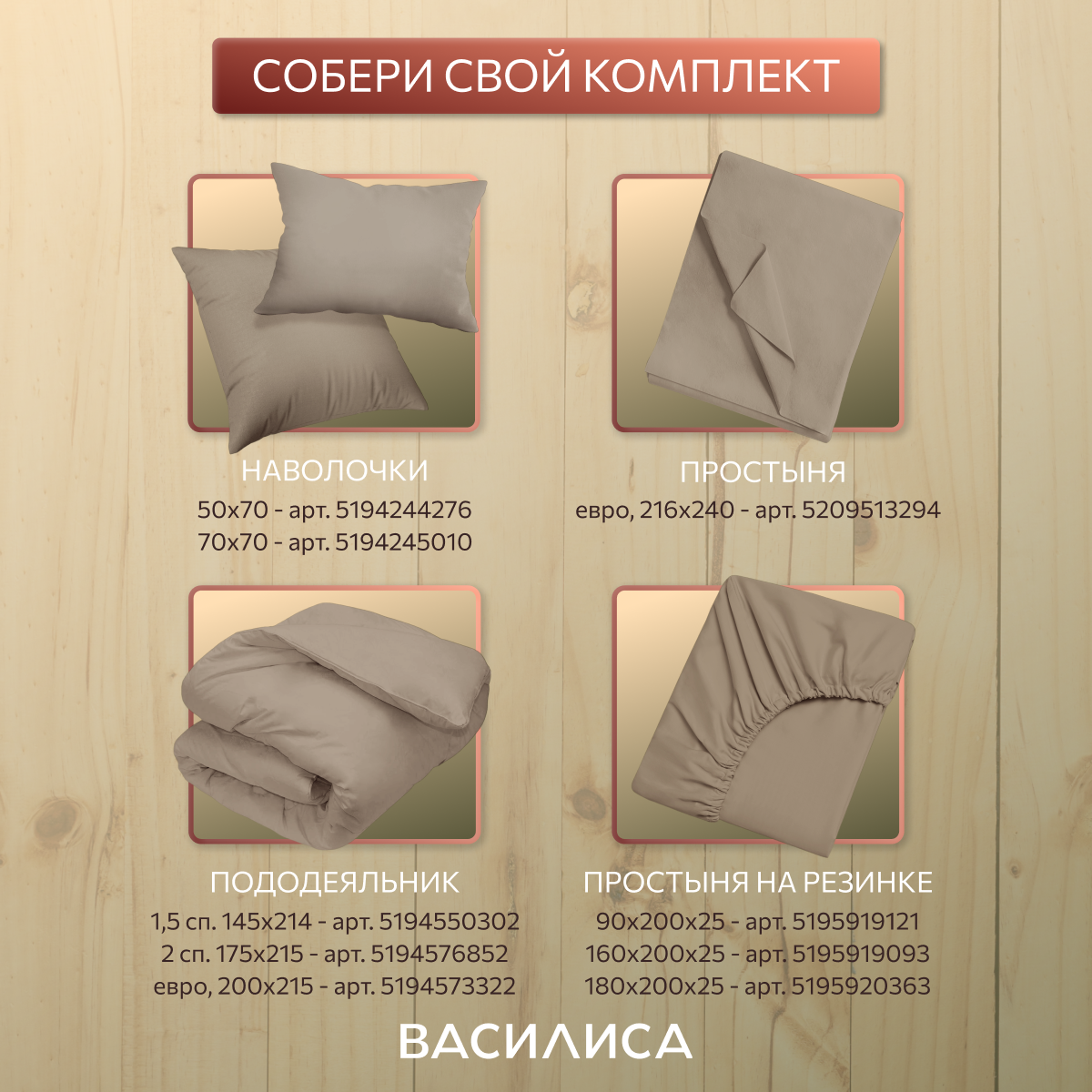 Комплект наволочек Василиса Глянец, 50х70 см, Перкаль, Мокко 420 ₽