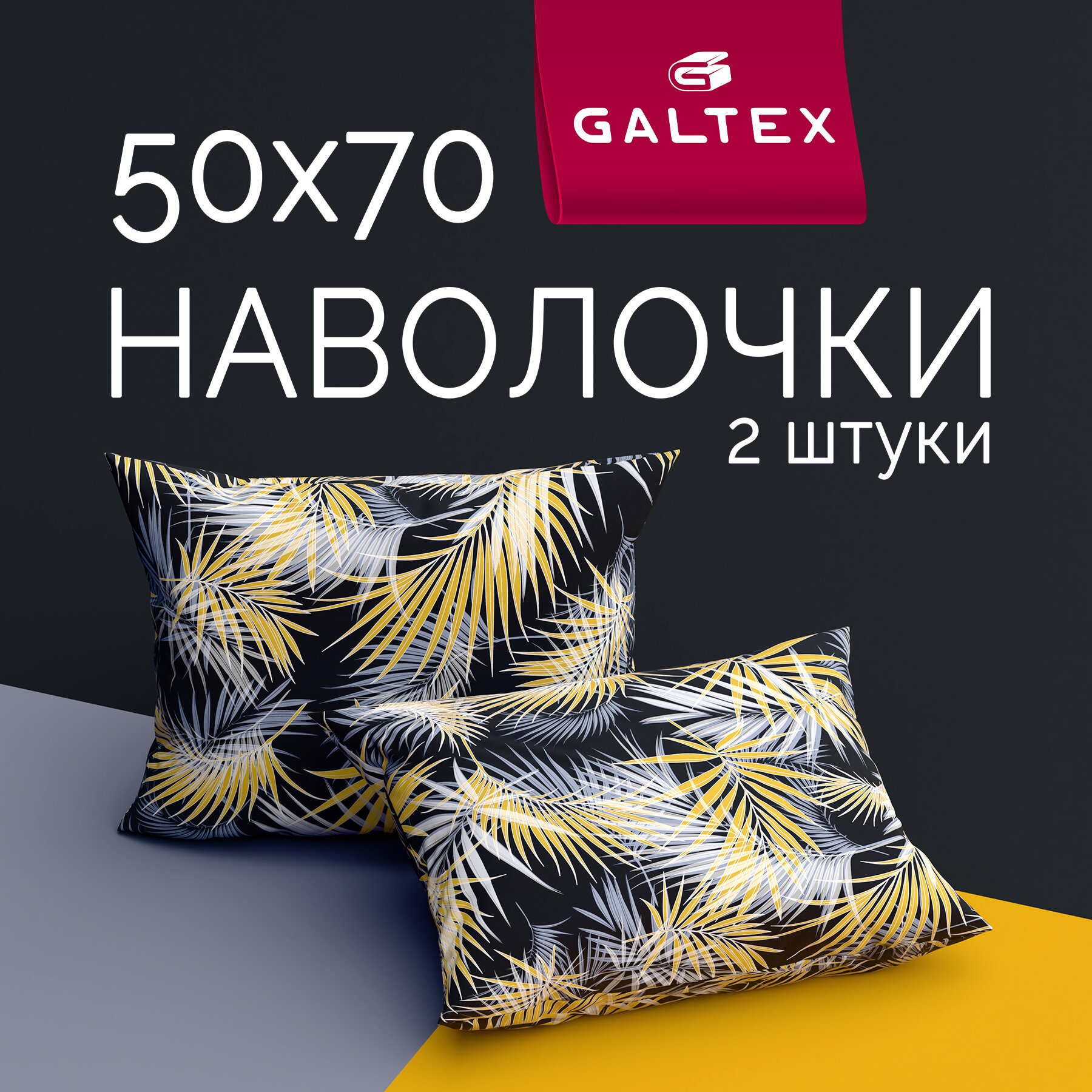 Наволочки 50х70 2 шт Galtex Тропикана черный бязь, 100% хлопок информация:
