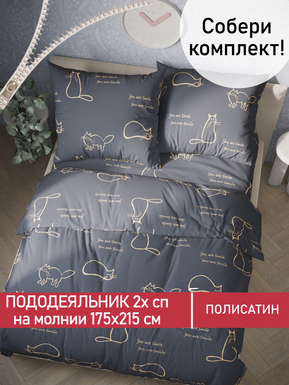Пододеяльник 175х215 см на молнии, 2-спальный, Мечта "Котики на сером", ткань полисатин информация:
