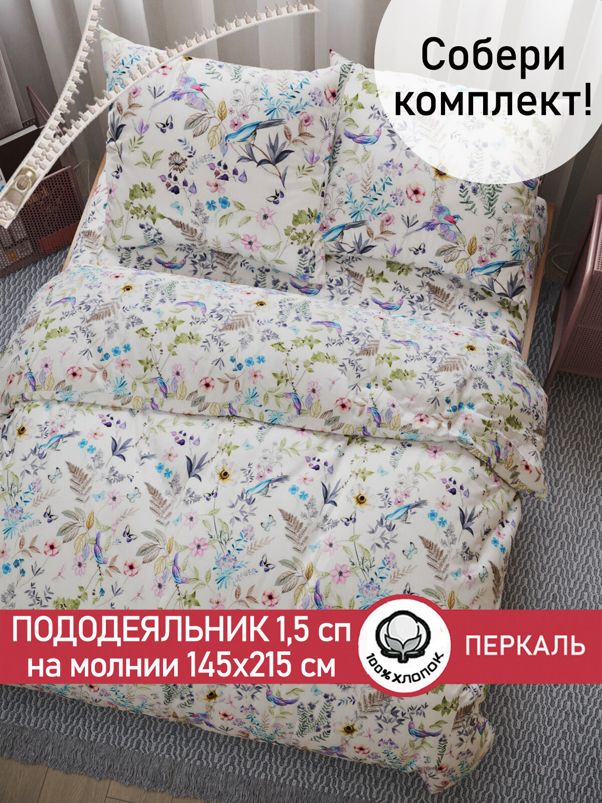 Пододеяльник 145х215 см на молнии, 1,5 спальный, Сказка "Каролина", ткань перкаль, 100% хлопок информация: