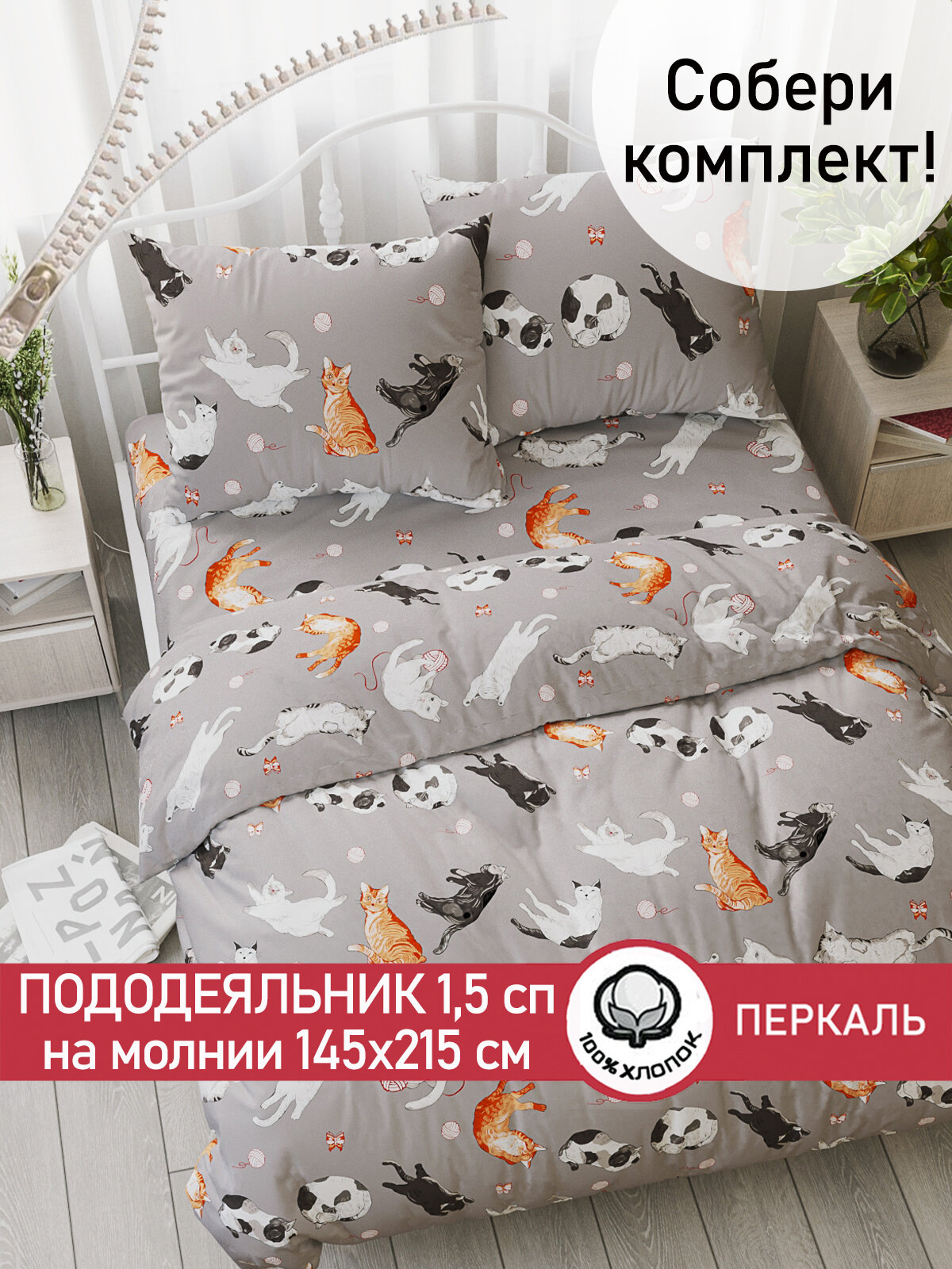 10 цен на Пододеяльник 145х215 см на молнии, 1,5 спальный, Сказка "Kitties", ткань перкаль, 100% хлопок
